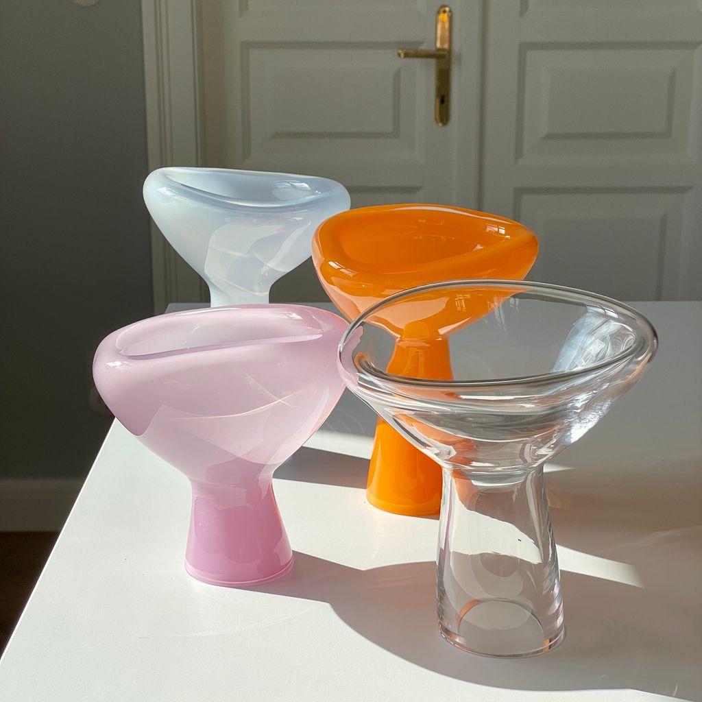 Ursula Futura is our alter ego. A person who dares to do what they feel like doing. A person who sees the positive in situations and always discovers new paths. Ursula Futura, design studio and premium glassware brand, plays with the ever-changing nature of its alter ego, fluid-like glass. The studio’s experimental pieces are created through the abstraction of observations translated into functional objects. Nature, science, and moments of wonder are often the starting points for the playful fantasy creations. Interested in the expression of emotions through objects, her designs are about raising a smile, spreading joy, and piquing curiosity.
