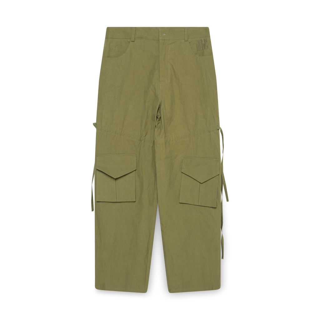 PHLEMUNS Cargo Pant feature draw string knee detail, front zip closure, two cargo pockets on leg, front and back pockets