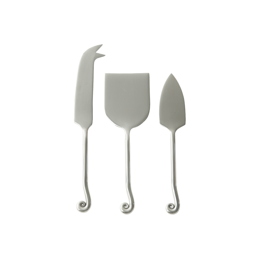 Includes pronged knife for hard cheese, tear-shaped knife for soft cheese, and wide blade knife for semi-hard cheese.