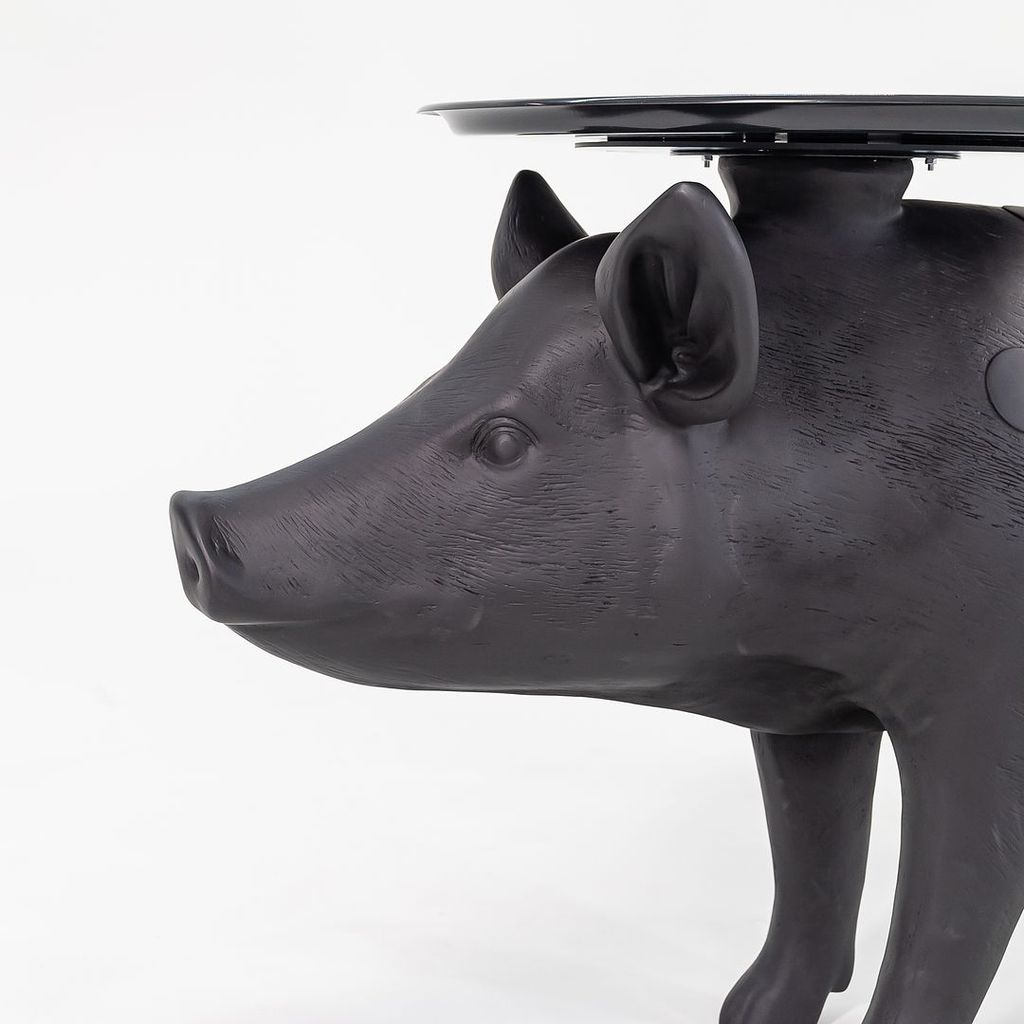 Listed for sale is a Pig Table made of black polyester and ABS. The table was designed by Front Design and produced by Moooi in the Netherlands. It dates to circa 2022 and is guaranteed as authentic. Condition is excellent. See photos.