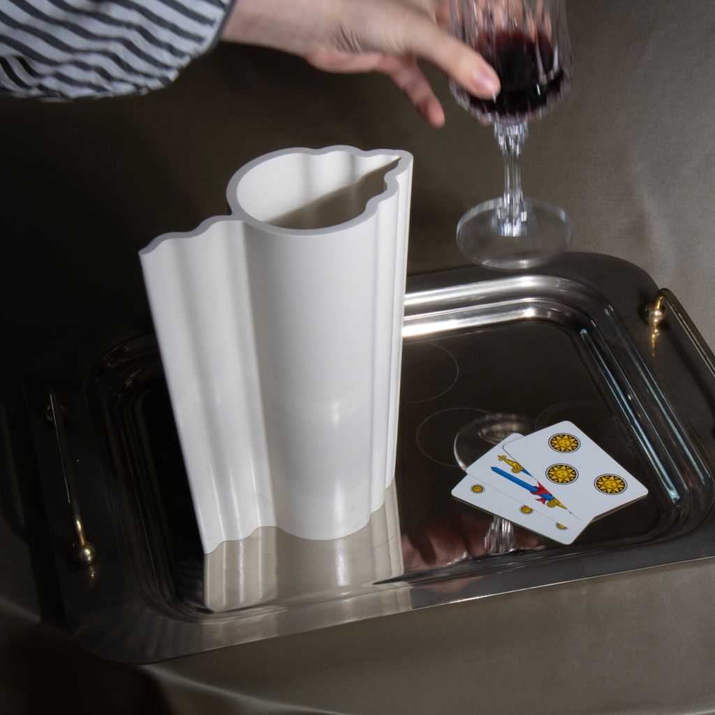 Pila is a vase with a neo-antique spirit. It pays homage to the verticality of the Doric columns, combined with the wavy imprints the sea leaves on the sand as it recedes. This versatile piece can be used as a vase, a carafe, or even a watering can.