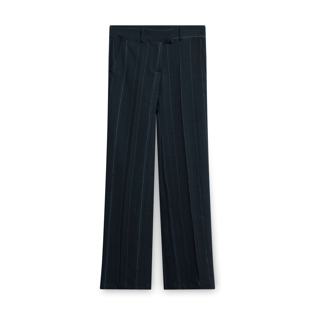 The most flattering and versatile pant. Mid-rise, fitted at the butt, and cut to fall loosely around the legs to give a slouchy look. In original EMPATH pinstripe. Pair it with the matching blazer.