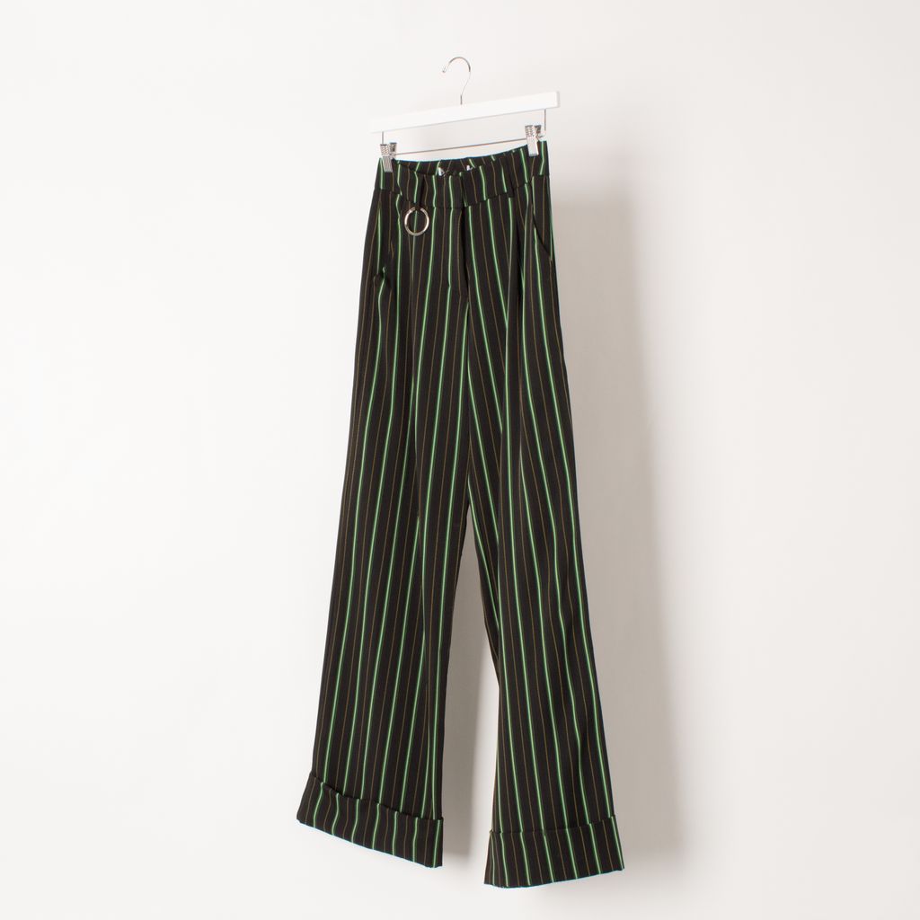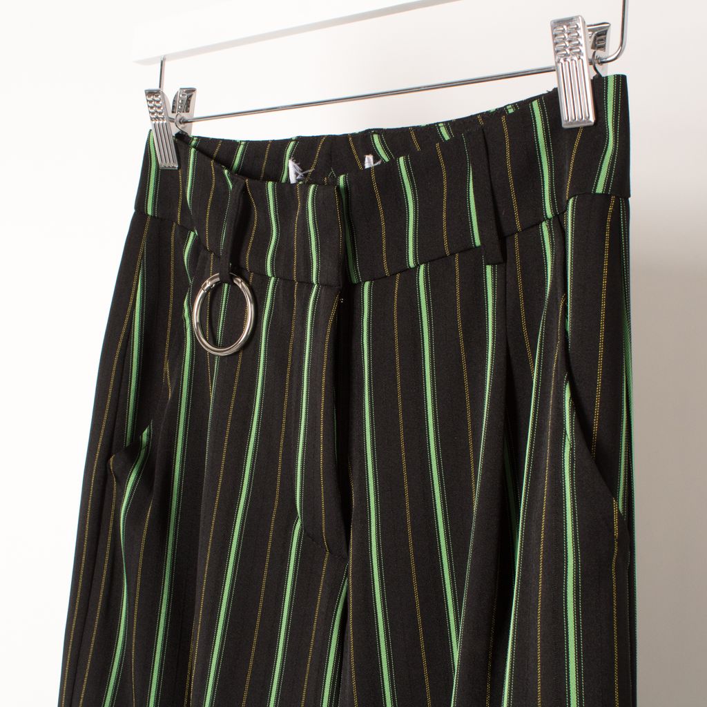 Like new, pinstripe vintage trouser. Featuring flowing motif throughout, stripe detailing, flared leg opening and a lightweight fabric blend.