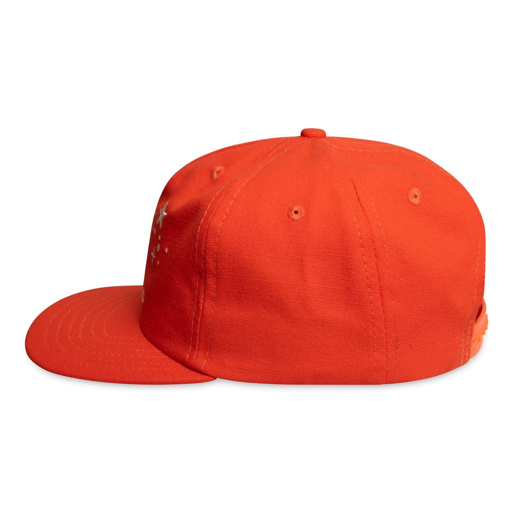 By purchasing this hat, you ensure that there will always be a blanket of stars overhead. These unstructured 5-panel snapback caps are literally beautiful. The orange one is absurd, it's so nice and heavy, I bought this thicker canvas fabric myself and I'll tell you, she's the perfect tint of orange (also has that sweet kelly green underbill), super heavy duty and holds a really nice structure. Bend the bill, or don't; I'll let you decide!