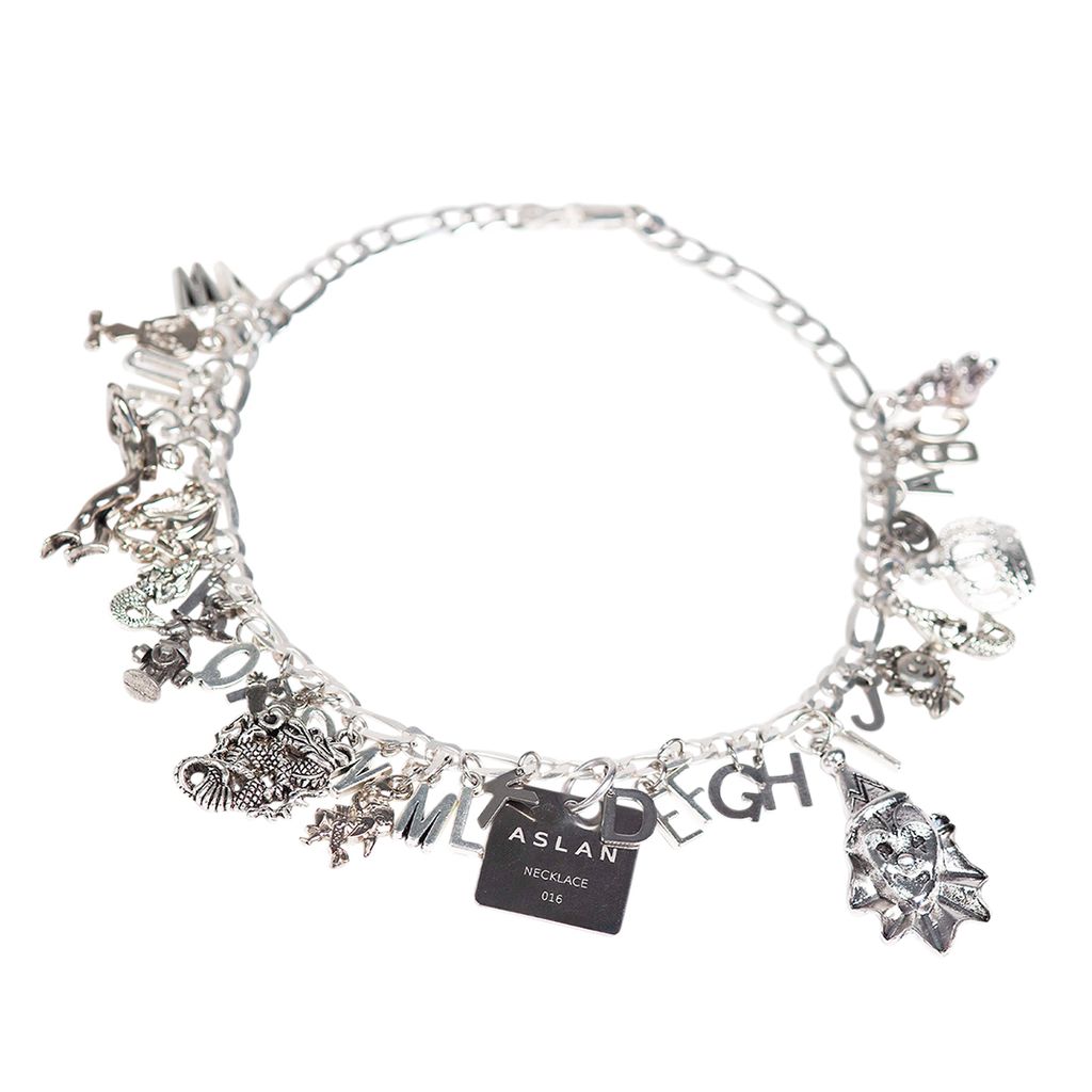 Play Choker 016 features engraved monochromatic tag on 925 Italian sterling silver chain with hand-picked assorted charms.