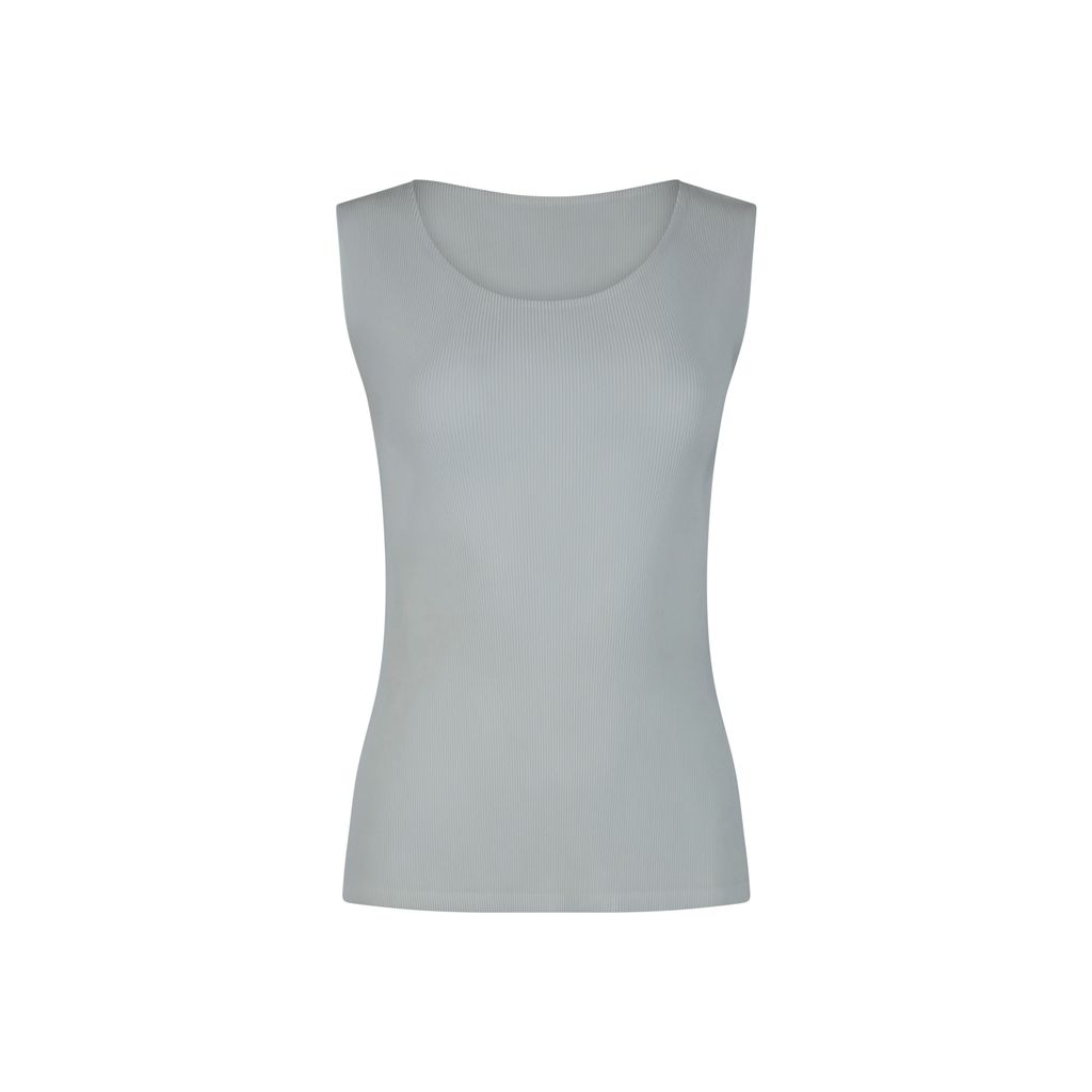 Sleeveless top from Pleats Please by Issey Miyake. Allover accordion pleats, sheer top. Round neckline. Straight hemline. In excellent condition.