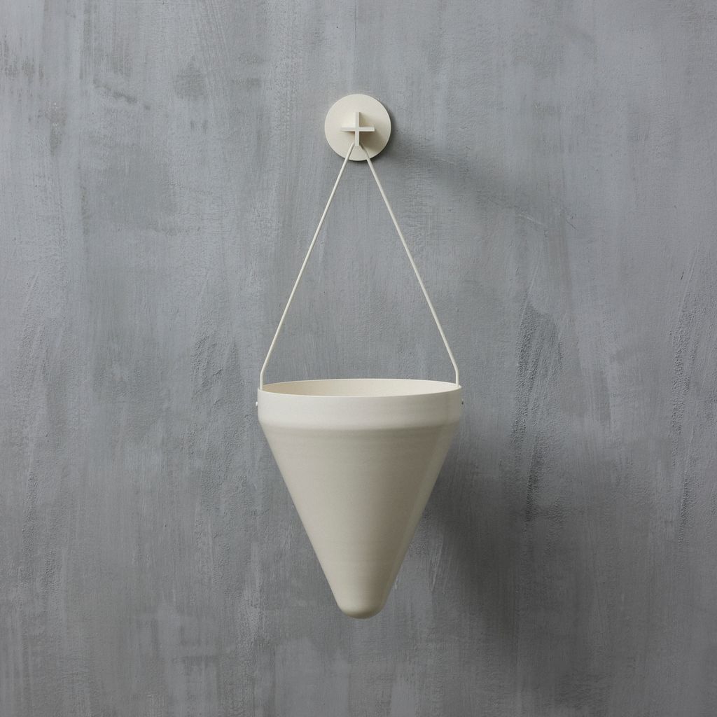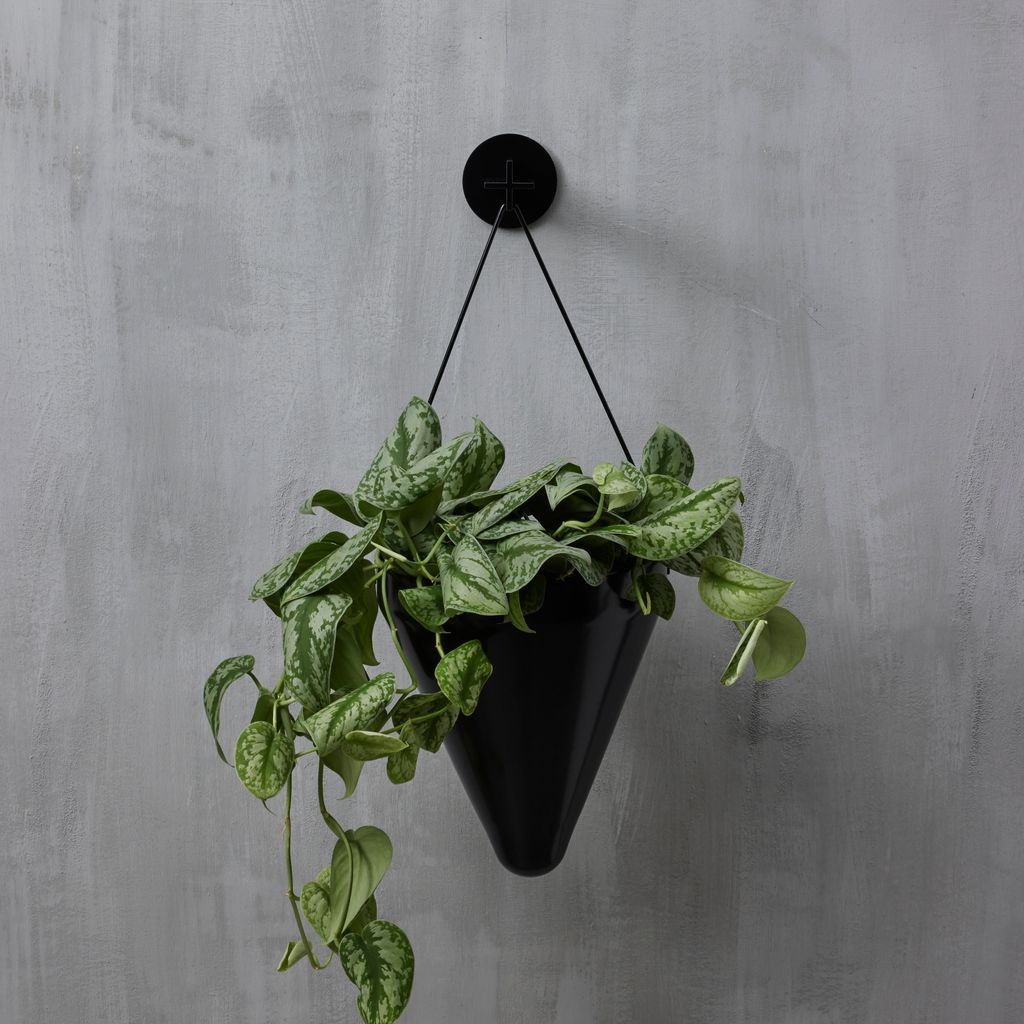 Plus Planters provide a home for indoor hanging plants. They are contemporary and refined, but also relaxed and easy. The elemental form of the planter vessel, suspended from a plus-shaped bracket, suits a wide variety of plants - it lets them shine. Plus Planters include a wall bracket, wire hanger, and 10 inch diameter spun aluminum vessel.