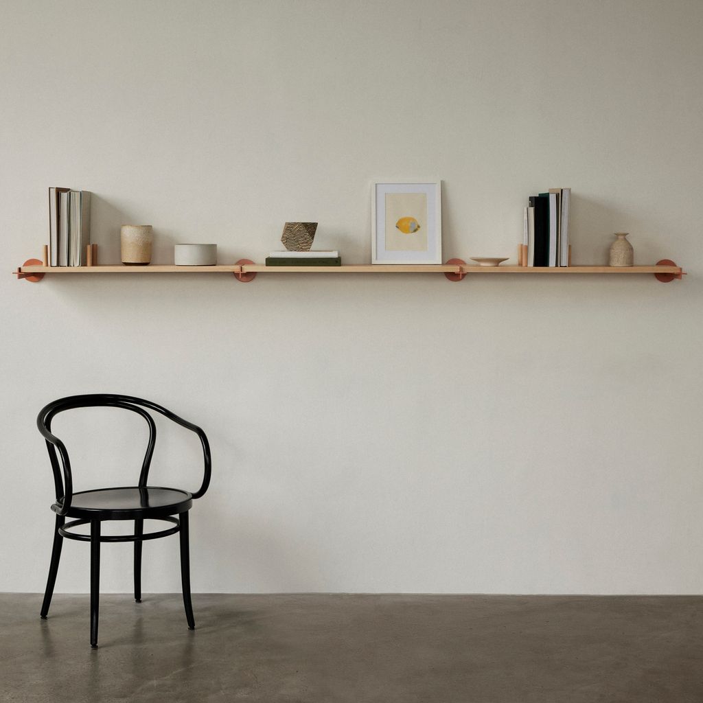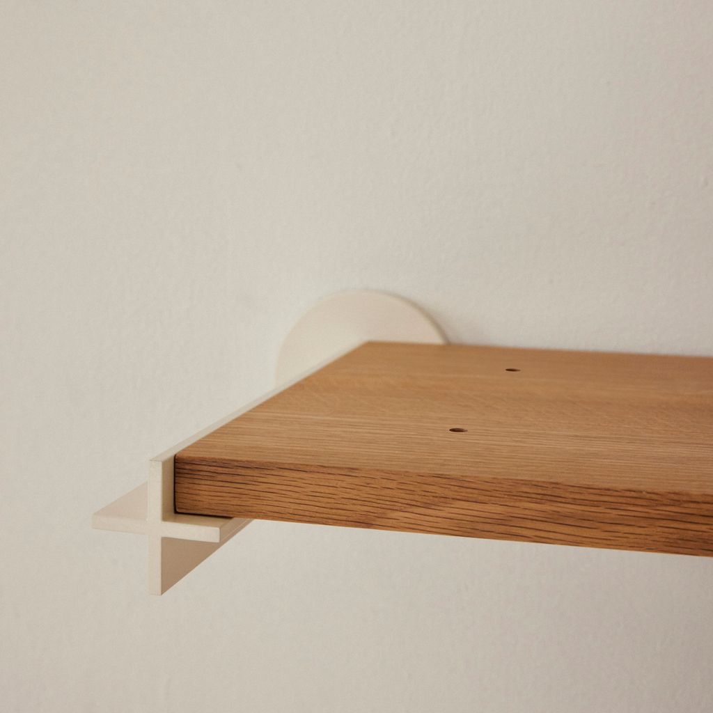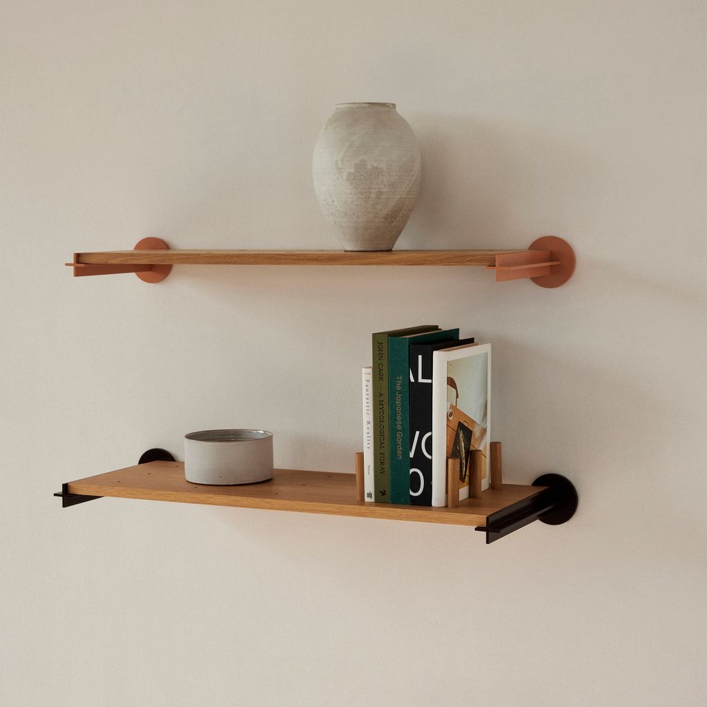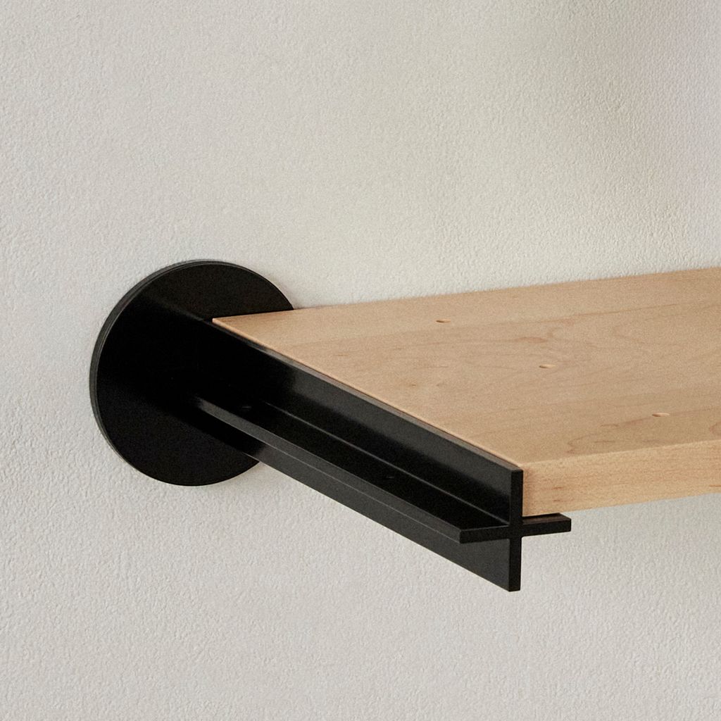 Plus Shelves are designed for both storage and display. They can be used for everyday items, like cookbooks and records, or as a platform for art and other important objects. Install them individually or in series - long runs are particularly beautiful! The shelves are available in either solid Hard Maple or White Oak, with matching round pegs. The pegs can be fitted through regularly-spaced holes in the shelf board surface to keep books and other objects upright.