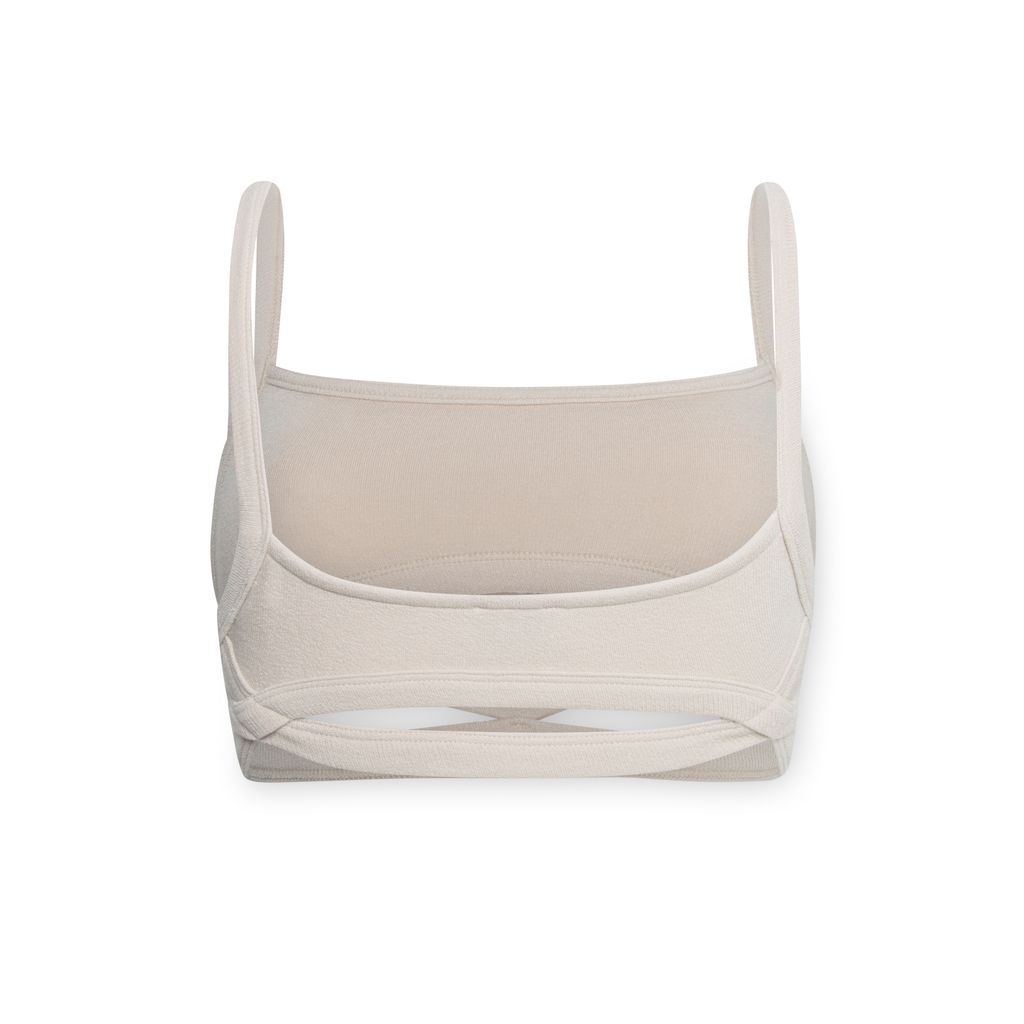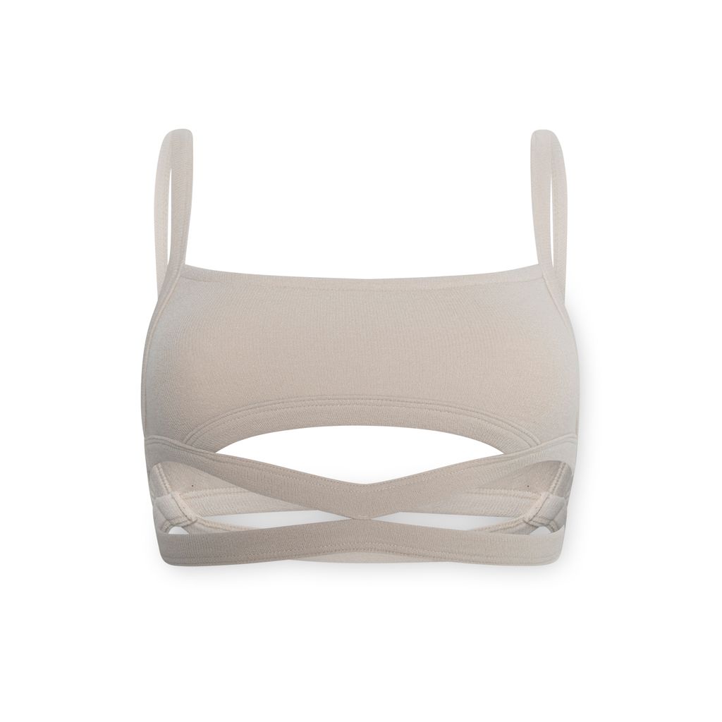 Plush Garner in Oat features strappy knit design and deadstock textured terry knit.
