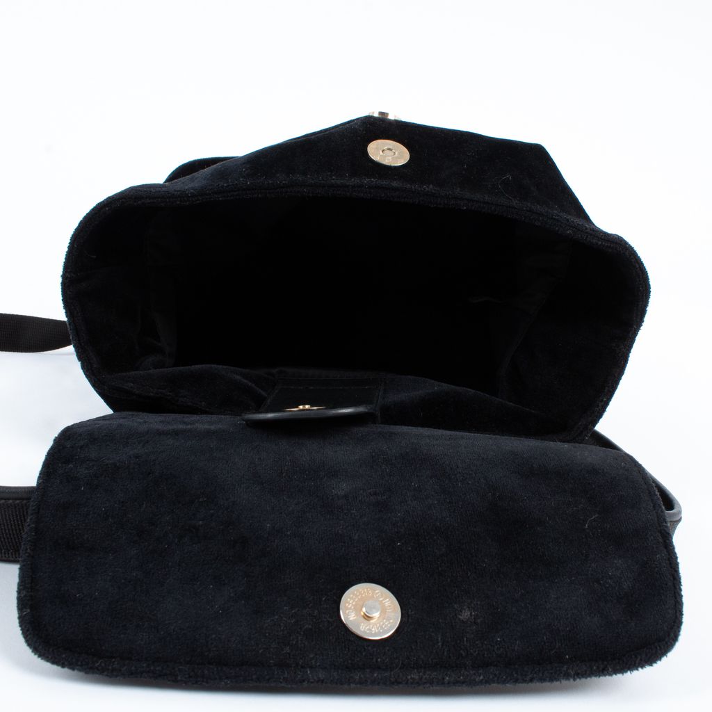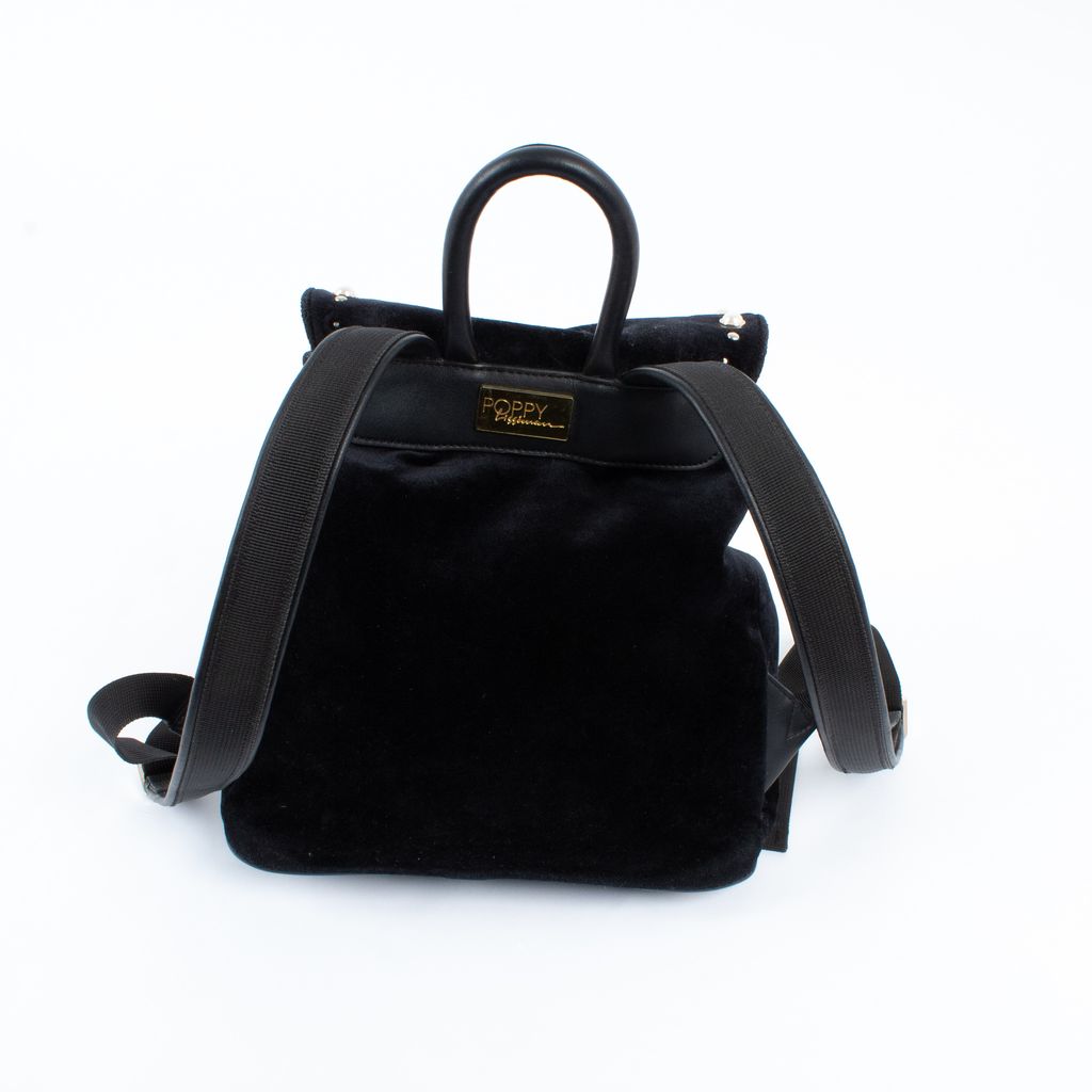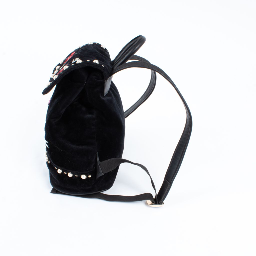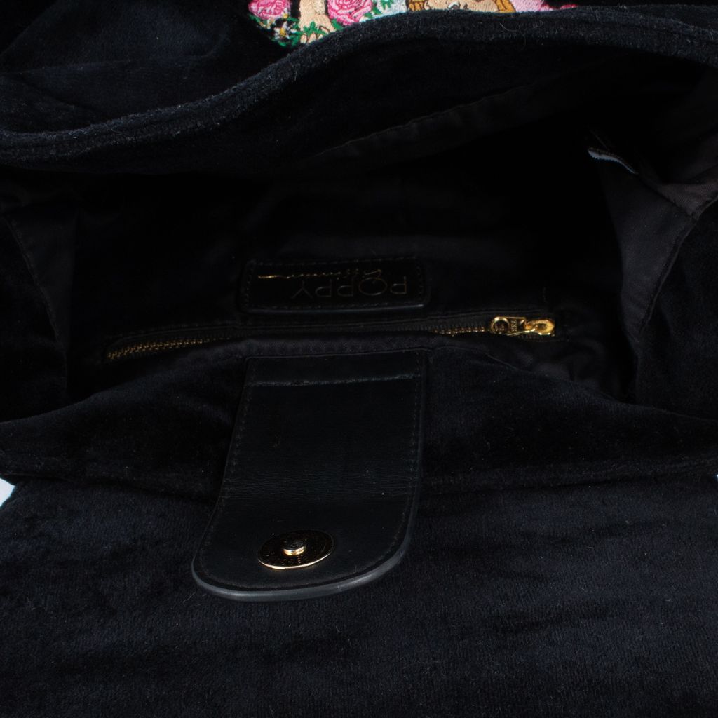 Sugar, spice, and everything nice, this precious Poppy Lissiman backpack will have you feeling like you're floating on a cloud. Features all over embroidery including flowers, cherub, and text, pearl details throughout, snap top closure, velvet outer fabrication, and adjustable length straps.