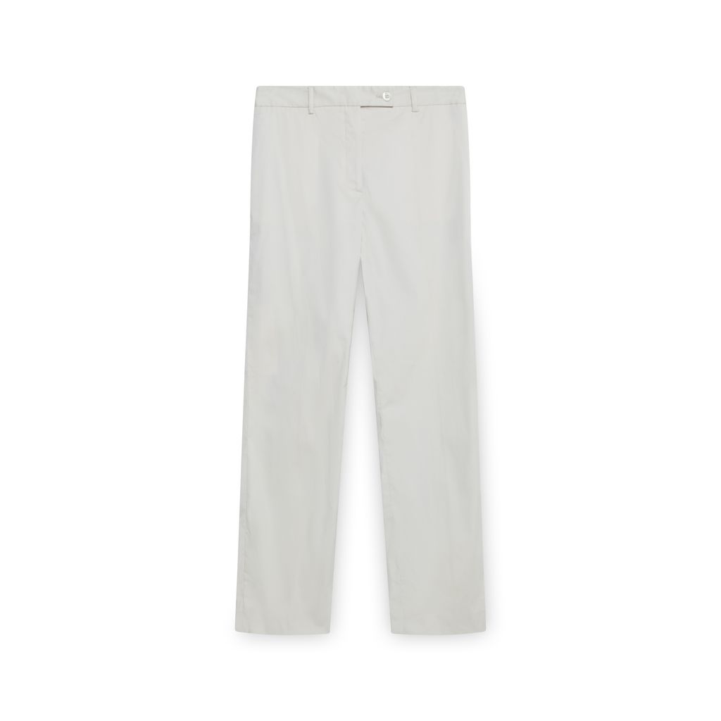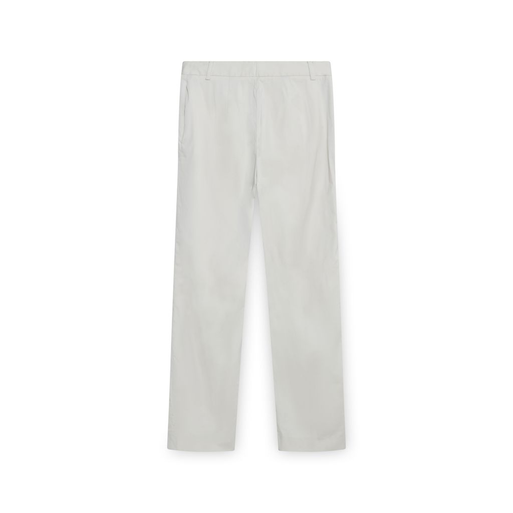 Prada Tan Trousers features a thin waistband with a relaxed fit and pearlescent button closure.
