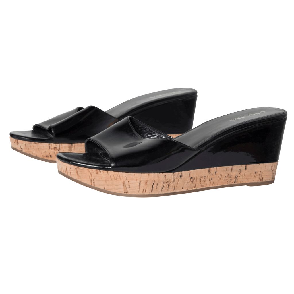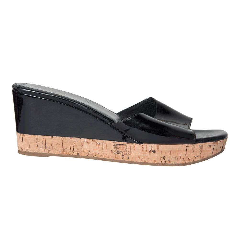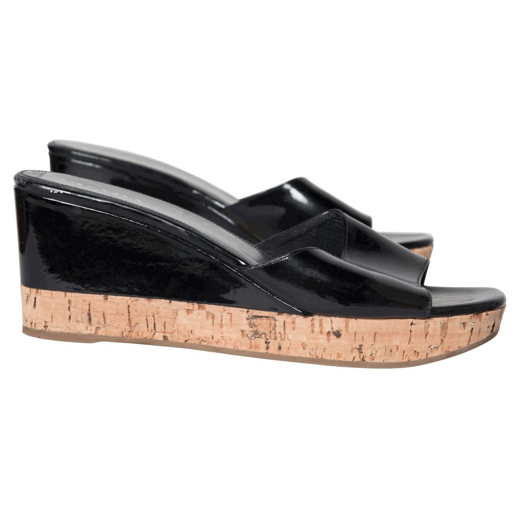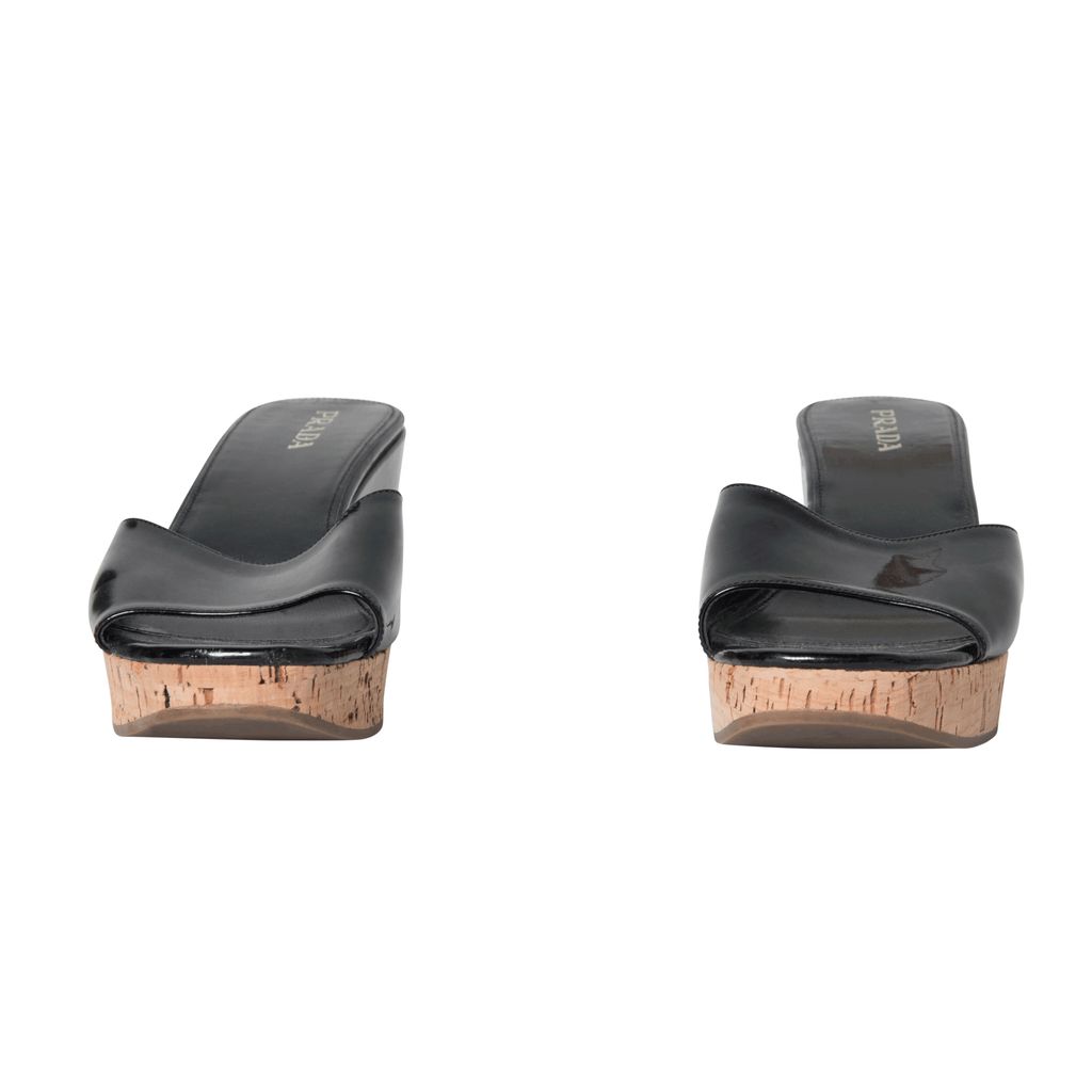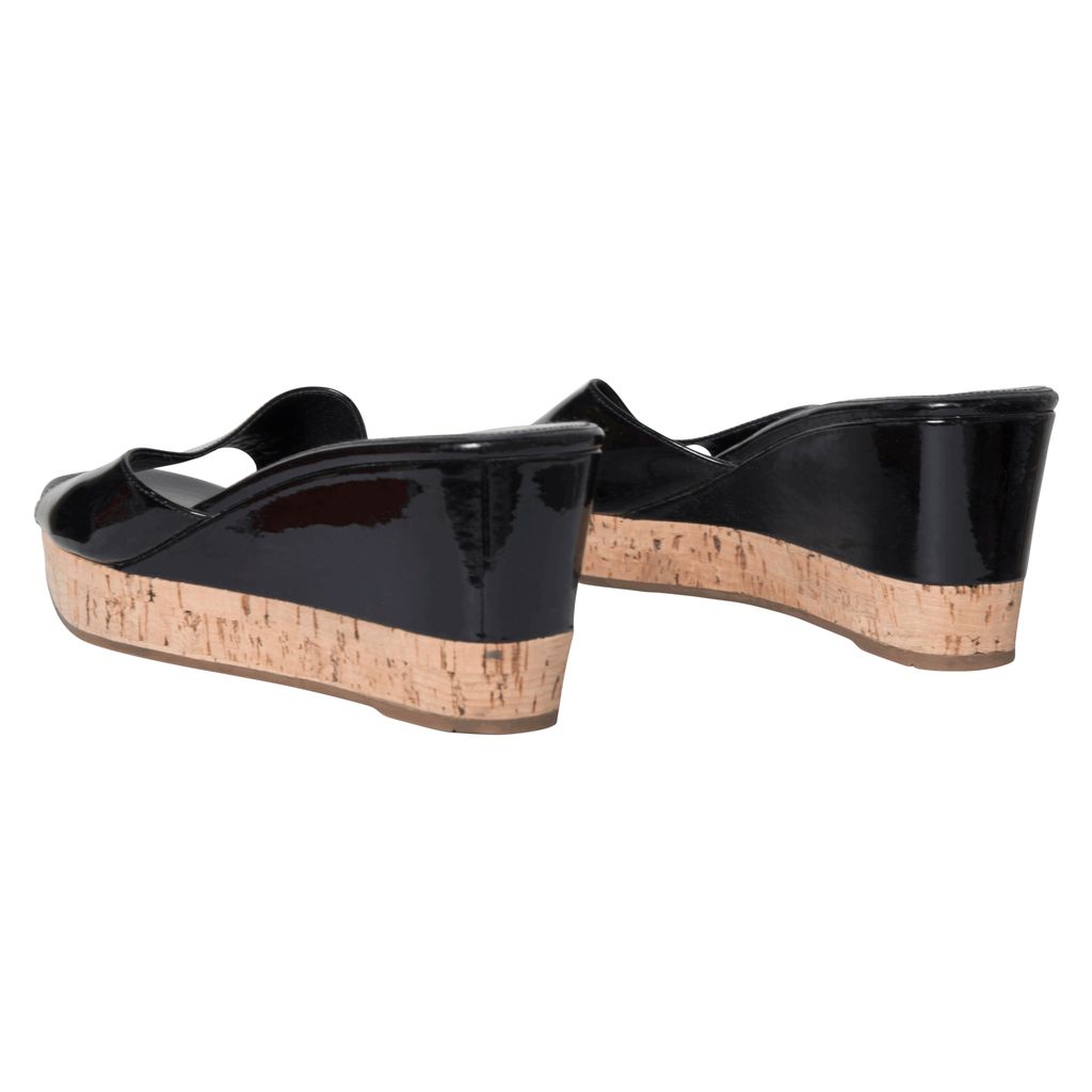 Prada wedges feature a classic black leather coloring and corkscrew wedge.