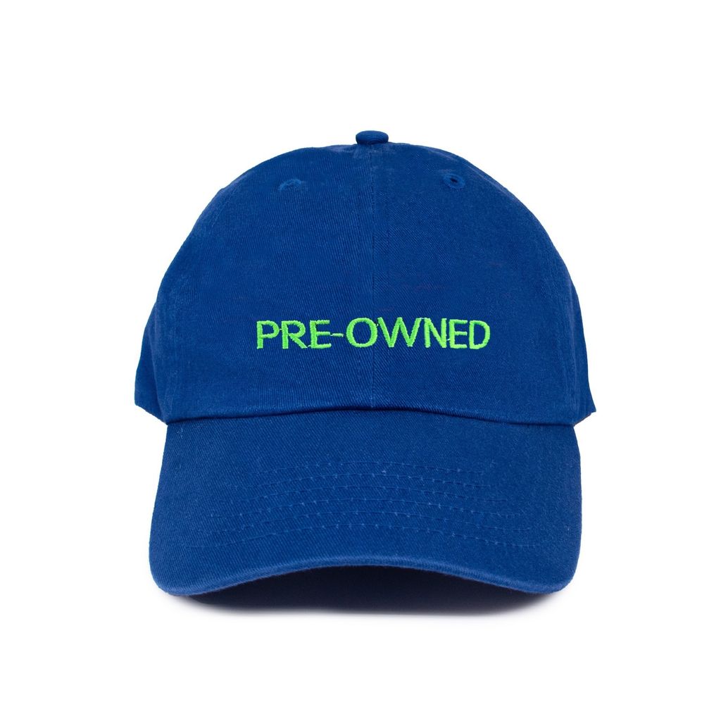 Basic.Space exclusive hat features "Pre Owned" embroidery in lime green on the front!