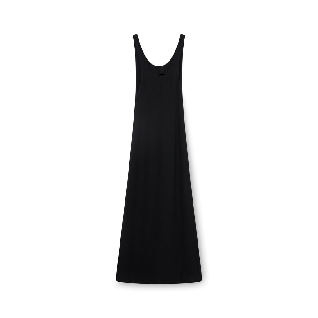 PRISCAVera Black Column Dress features kangaroo pockets and leg slit.