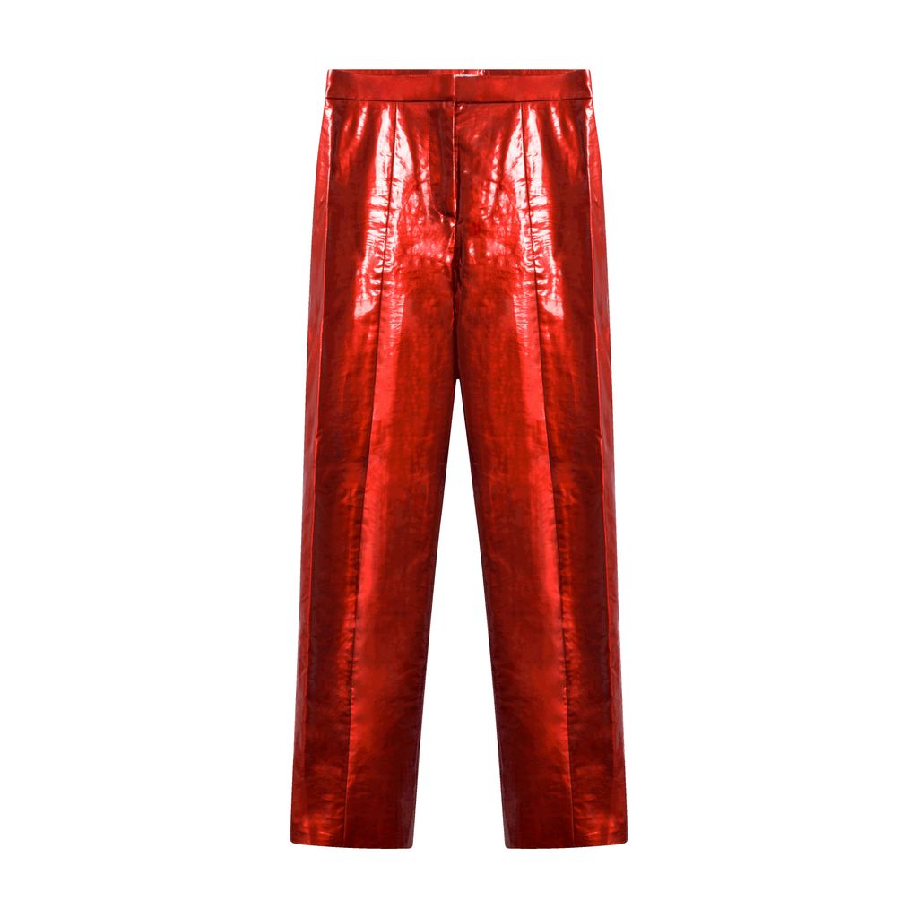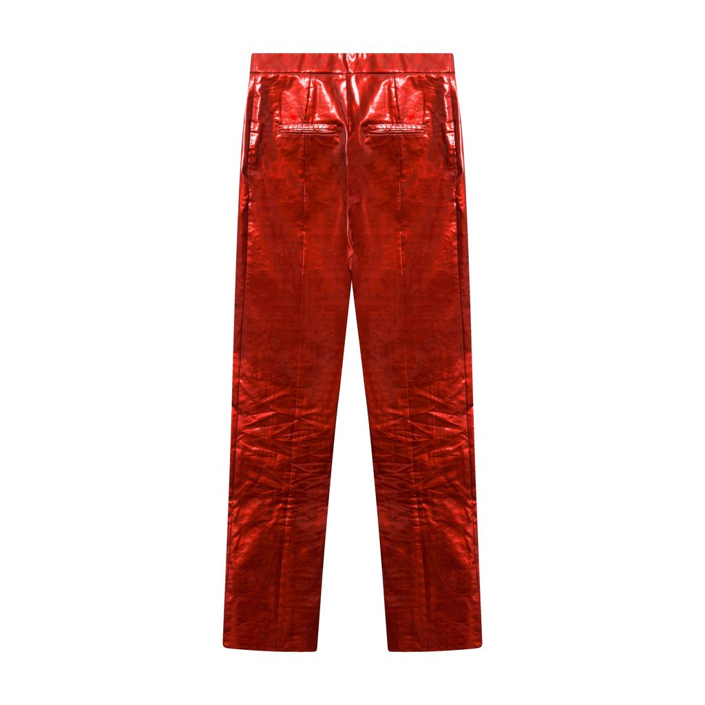 High rise deep orange patent trousers by PRISCAVera, featuring a slim leg, front panel seam detailing, and classic zip and hook closure.