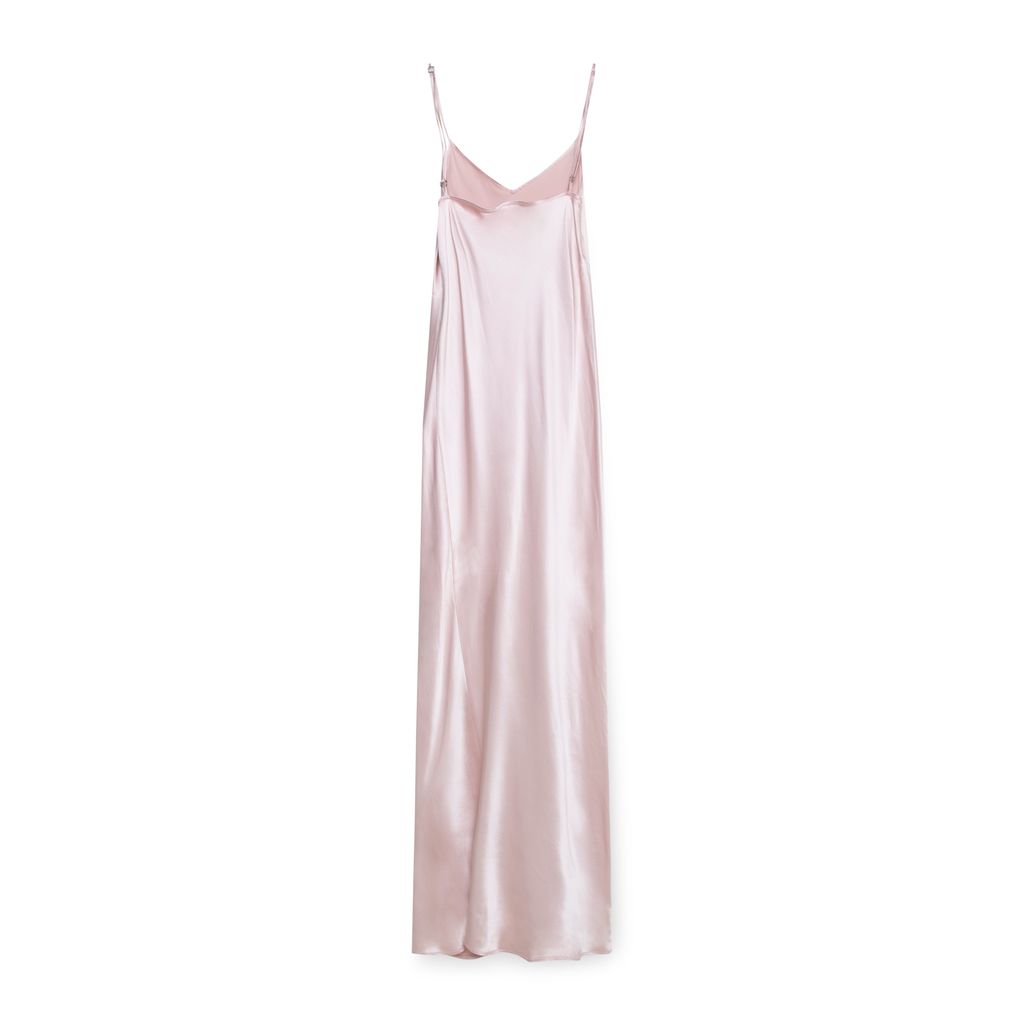 Proenza Schouler Pink Silk Slip Dress features adjustable spaghetti straps, V-neck, and maxi length.