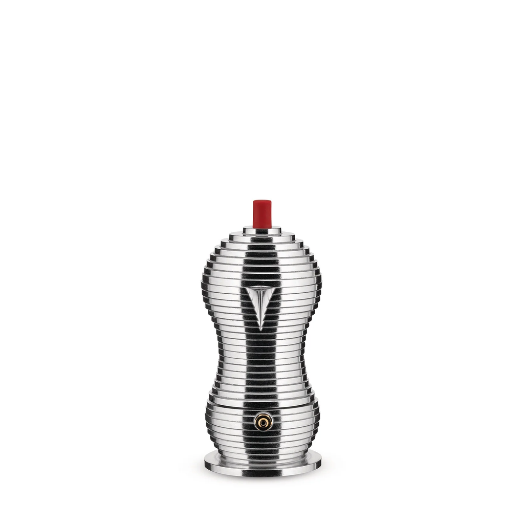 A revolutionary moka that combines the technology developed by illycaffè and the design experience of Alessi. Designed by Michele de Lucchi, Pulcina encapsulates a small but substantial design innovation that stops dispensing the drink at the right time before the coffee gets a bitter aftertaste. This helps to enhance the full and rich aroma of this drink. The spout, which recalls a chick's beak (hence the name of the coffee maker) allows it to perfectly stop the drop.