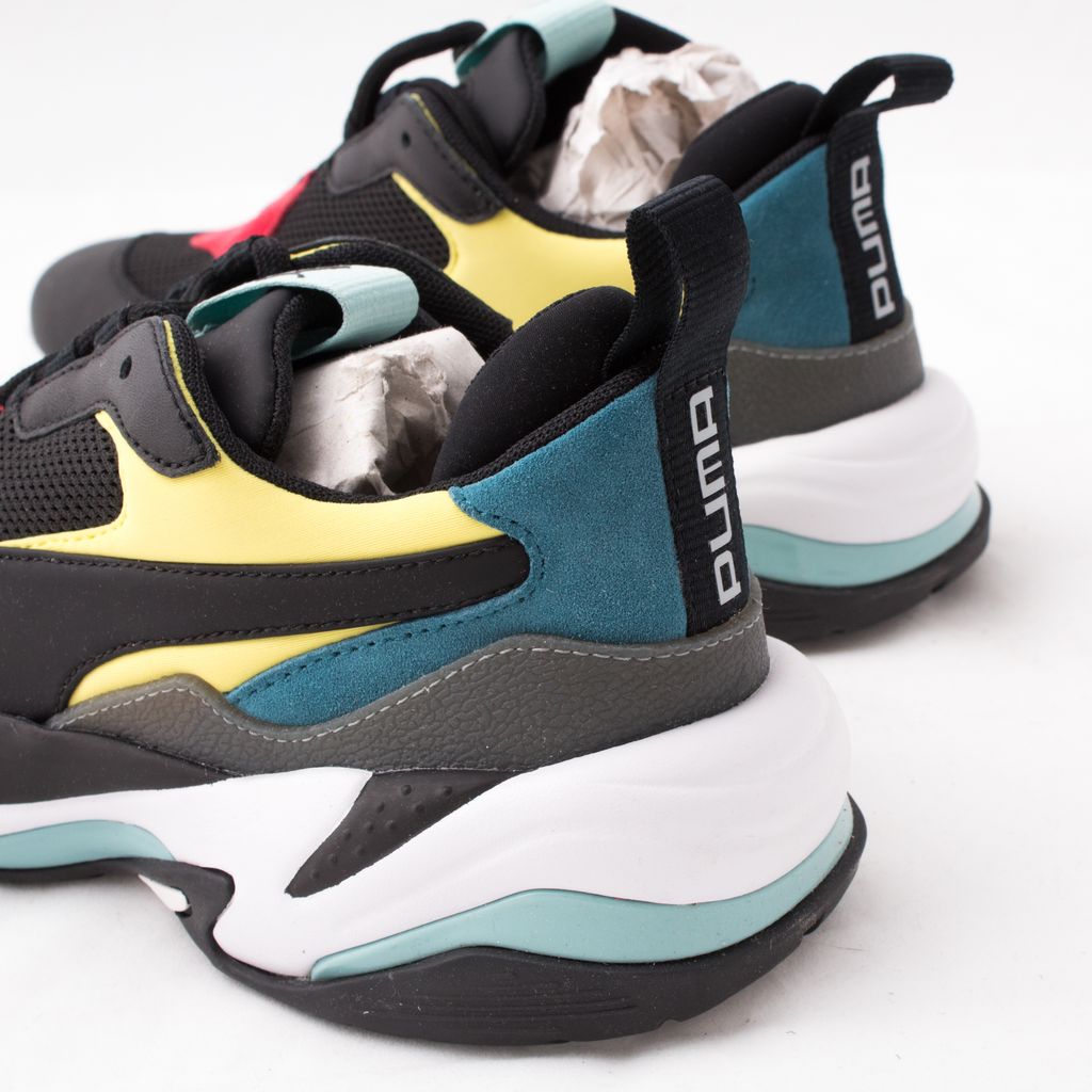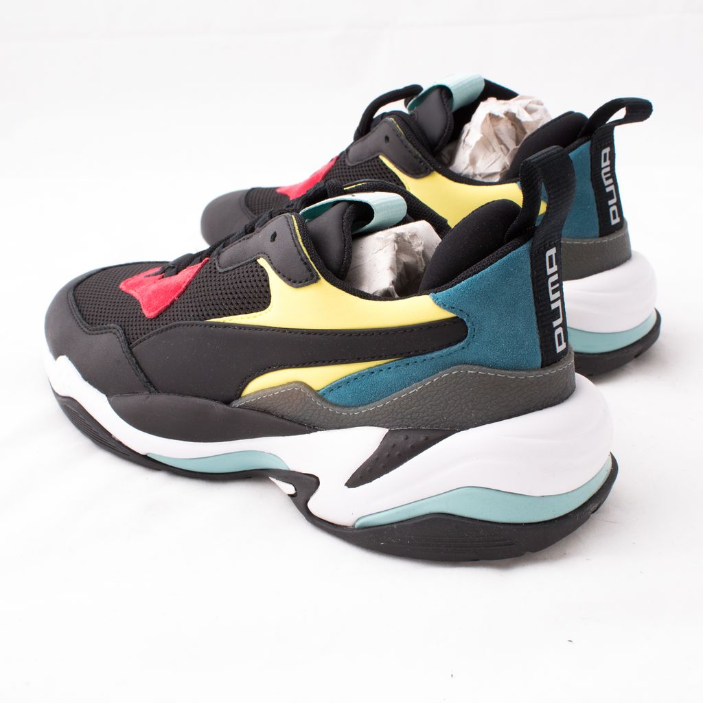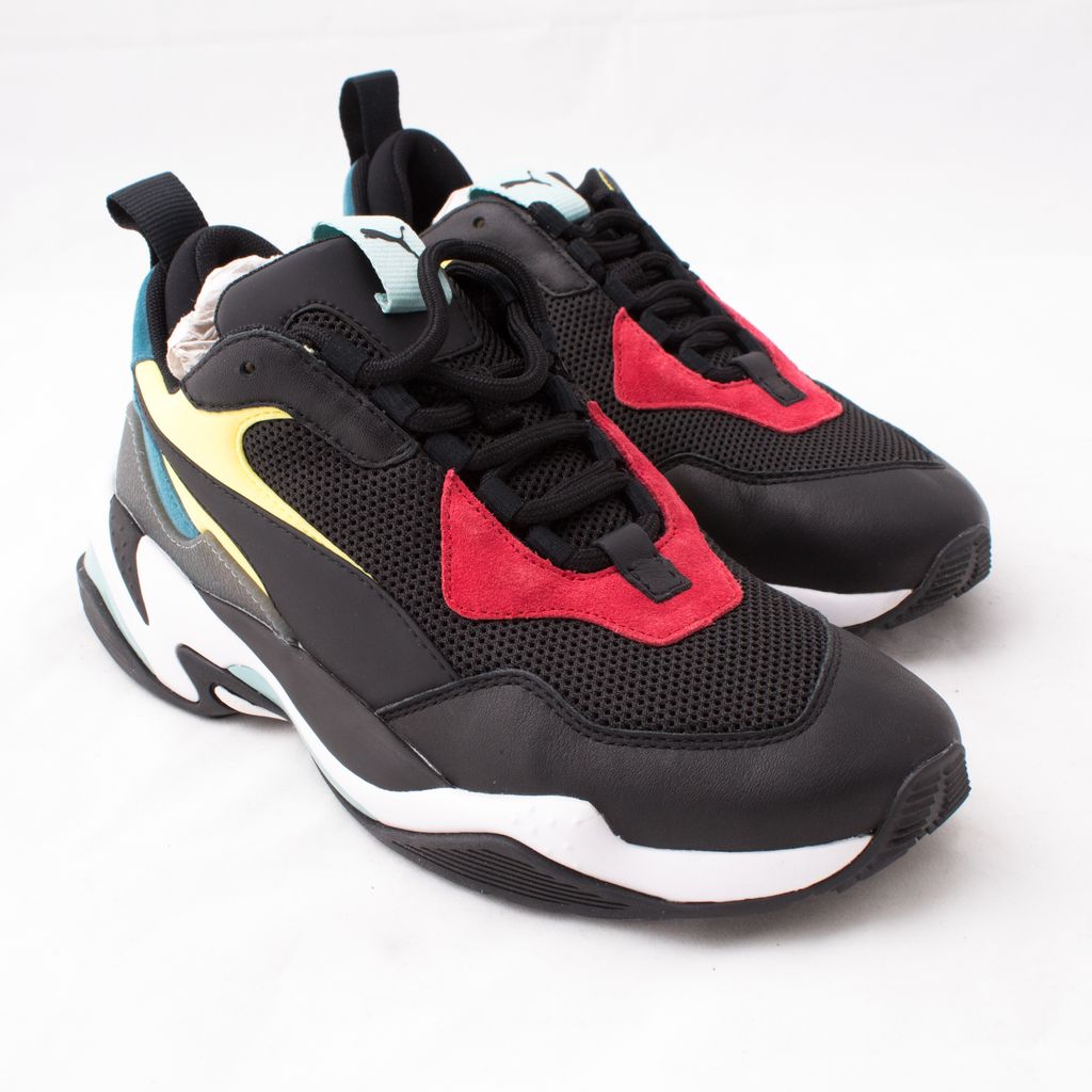 Brand new in box, Puma sample sneaker. Reminiscent to a Wave Runner with a multi-color, mixed material upper and bulky stark white sole.