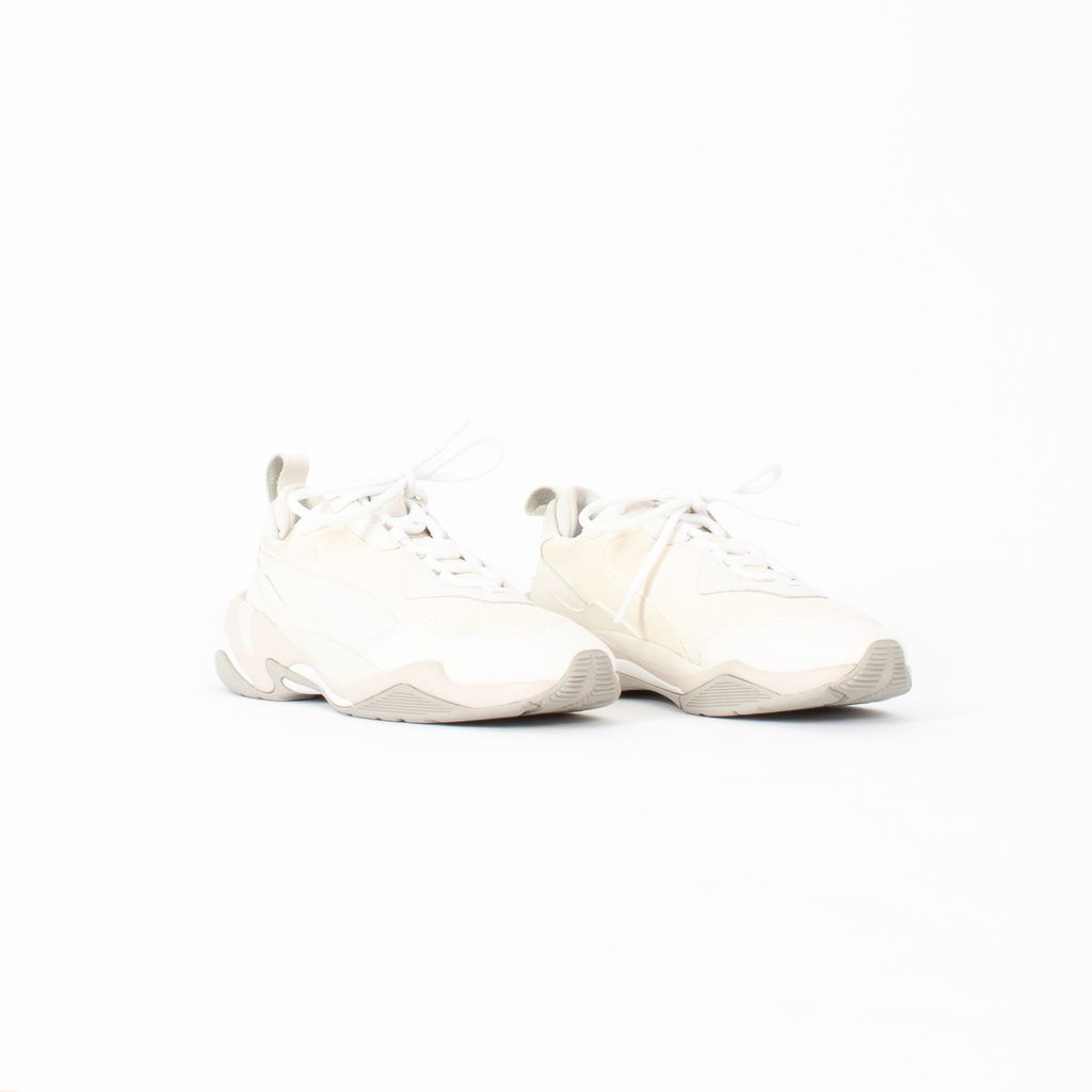 These sneakers from Puma are a sample from their Fall/Winter 2018 collection done in a tonal and mixed material. Features suede and leather body fabrication, raised rubberized sole, tonal laces, pull tab at back of heel for easy pull on, and Puma embossed logo at heels.