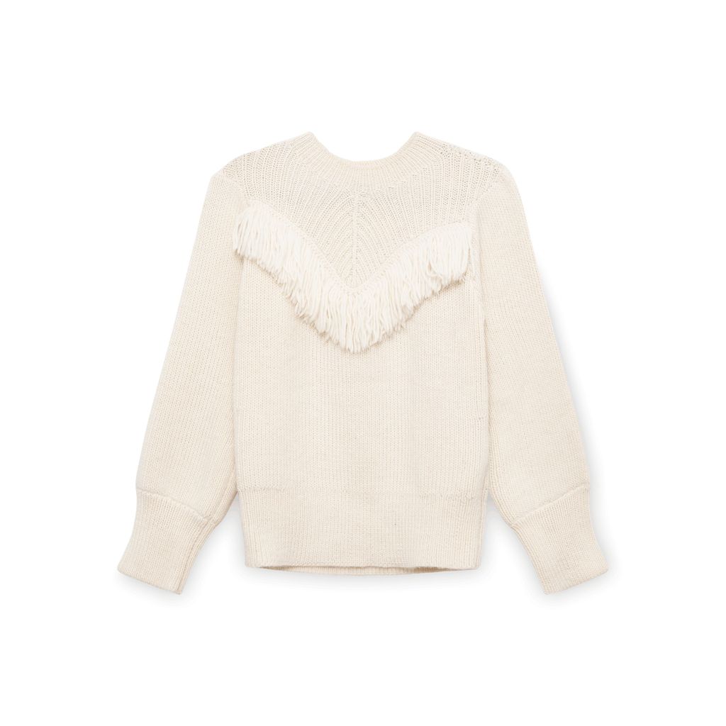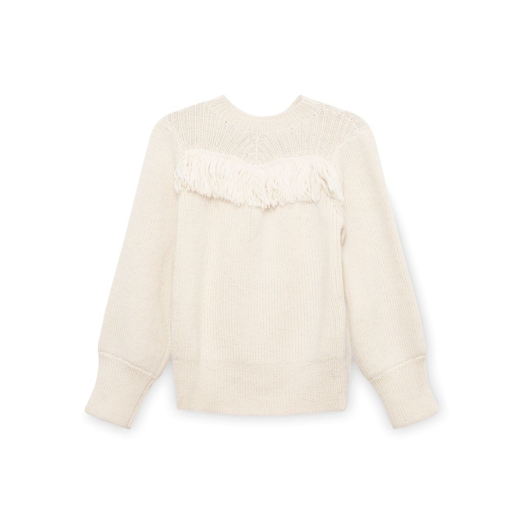 Puppets & Puppets Sweater features fringe detail and is made of Merino & Baby Llama Wool.