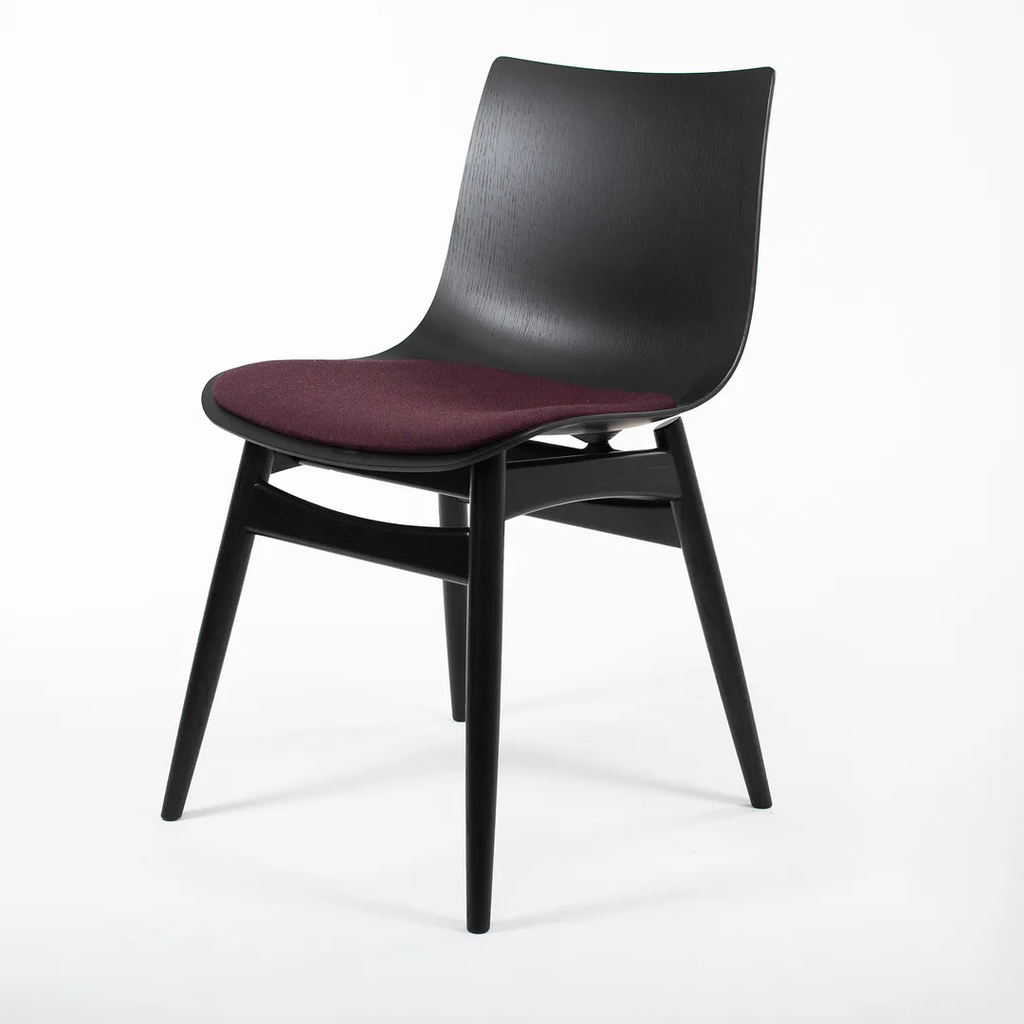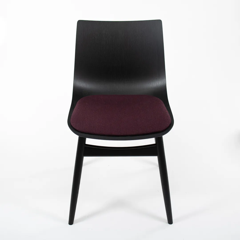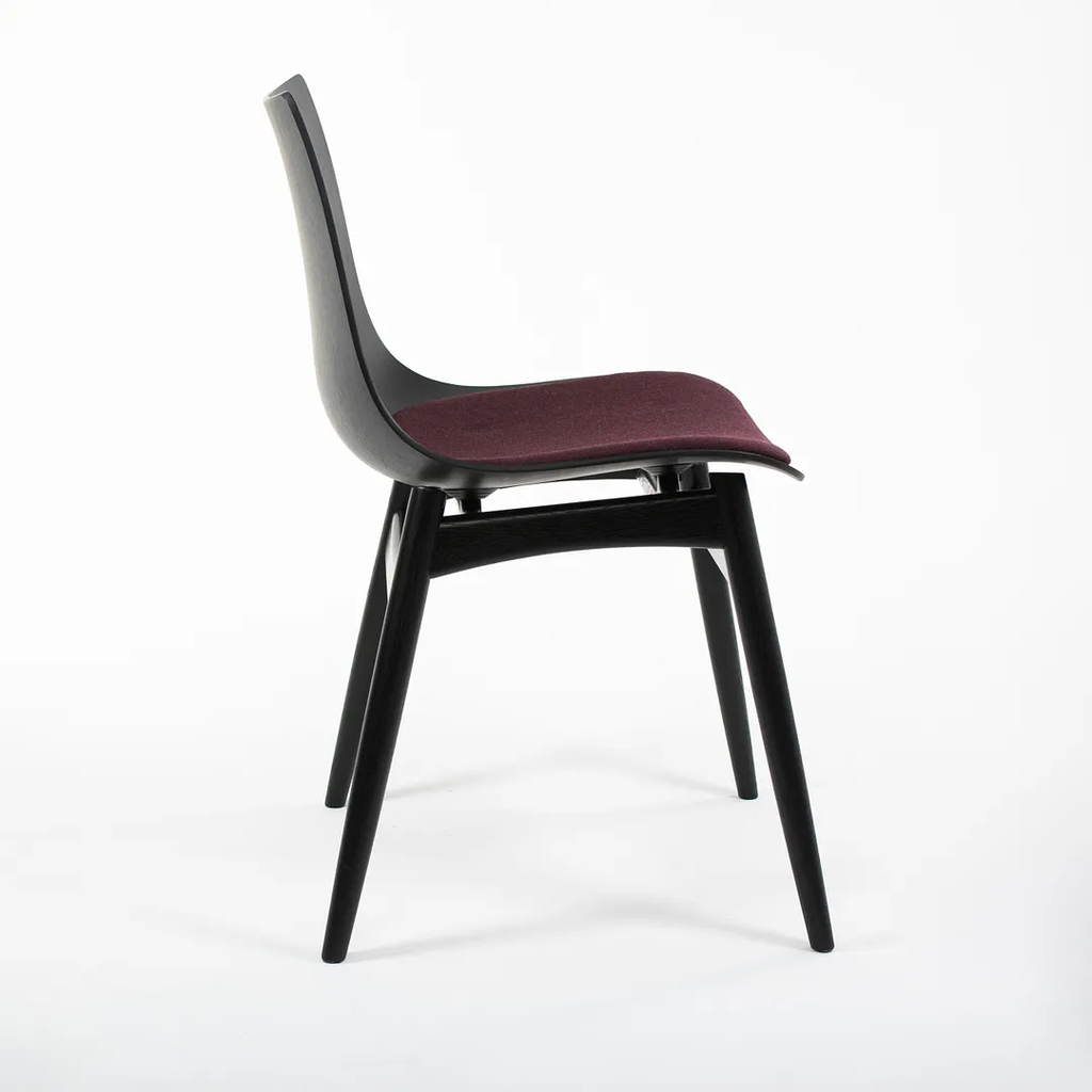 Listed for sale is a BA001S Preludia Wood Chair, designed by Brad Ascalon and produced by Carl Hansen & Son in Denmark. The chair is made with an ebonized oak/beech frame and purple fabric seat. The chair dates circa 2021 and is guaranteed as authentic. Condition is excellent with minimal wear. See photos. This came directly from Carl Hansen and was likely never used in a home or office setting.