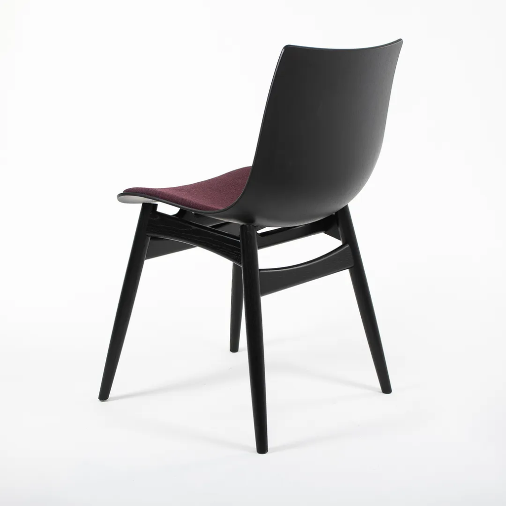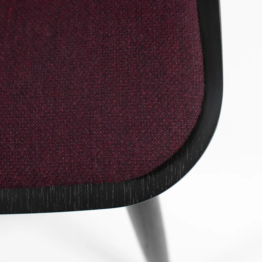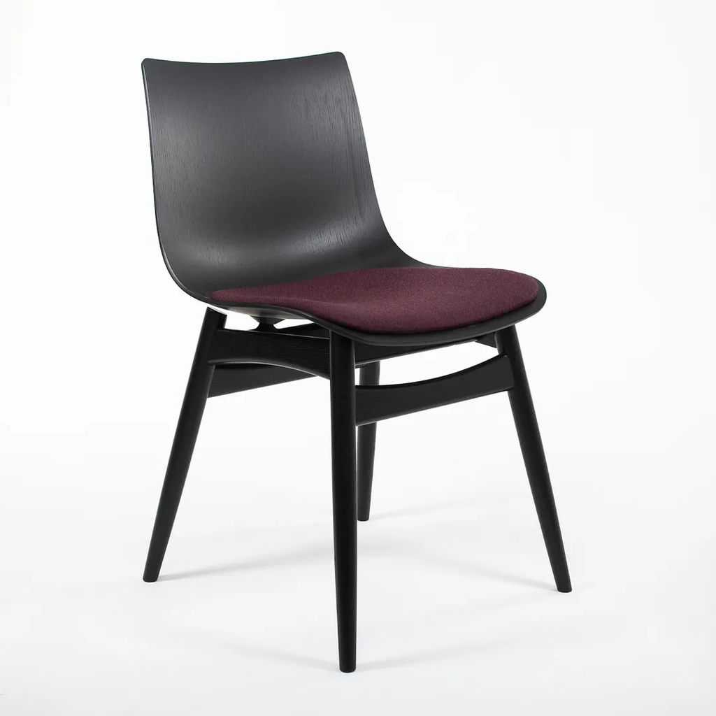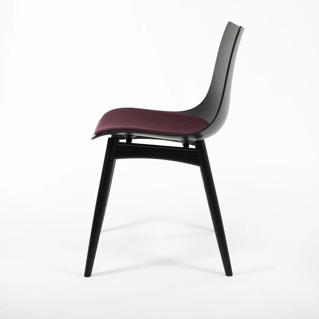 Listed for sale is a BA001S Preludia Wood Chair, designed by Brad Ascalon and produced by Carl Hansen & Son in Denmark. The chair is made with an ebonized oak/beech frame and purple fabric seat. The chair dates circa 2021 and is guaranteed as authentic. Condition is excellent with minimal wear. See photos. This came directly from Carl Hansen and was likely never used in a home or office setting.