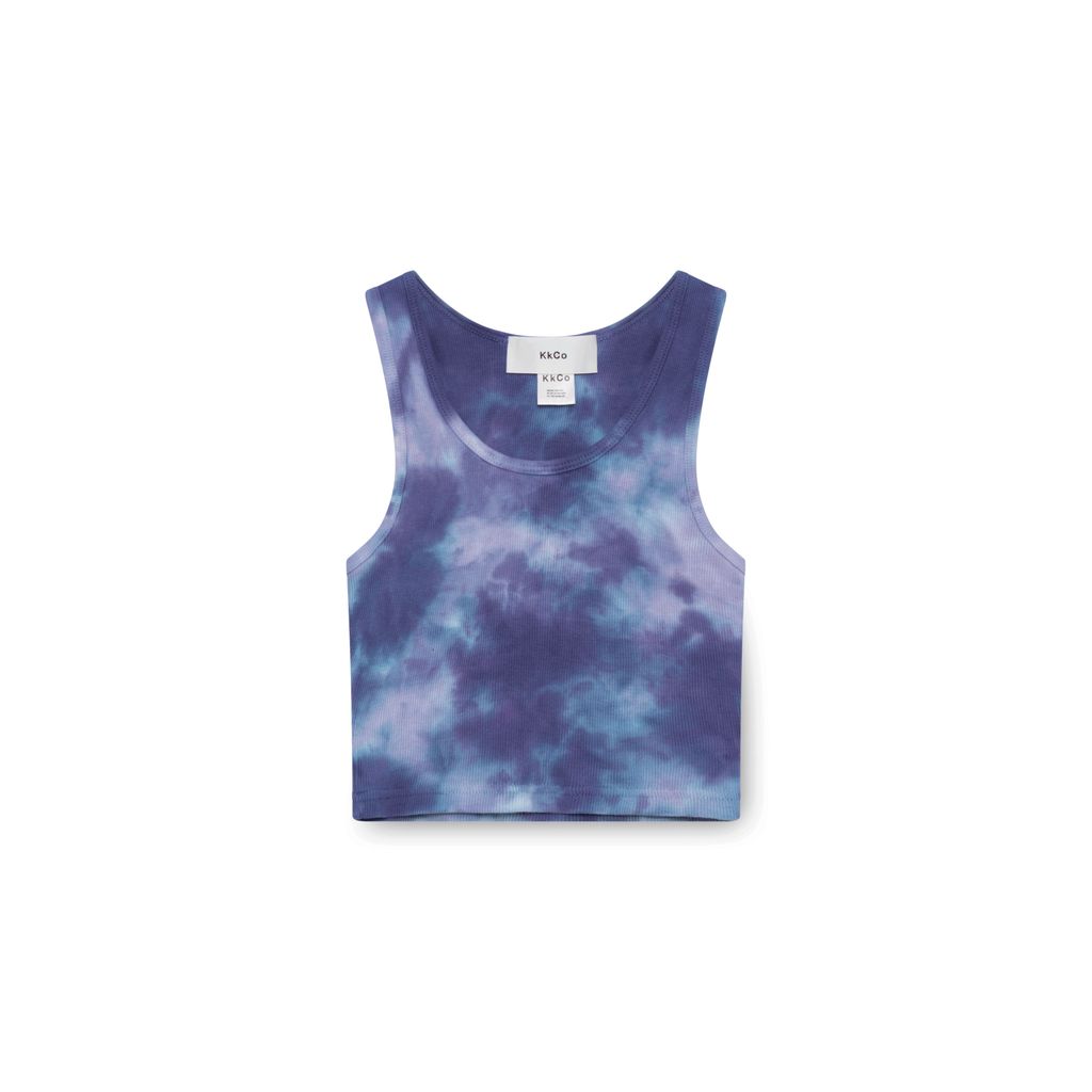 Purple Tie Dye Tank Top features cropped fit and is 100% cotton.