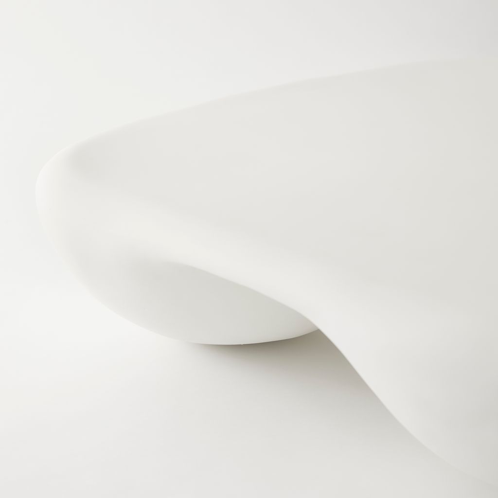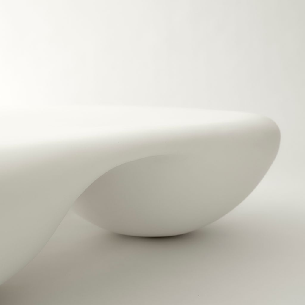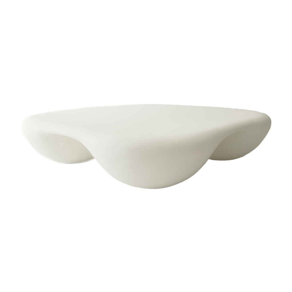 Cast in stone composite, the Quad table gets its white color and unique matte finish from a blend of marble dust and resin, making it both durable and light. The resin fabrication makes it resistant to stains, however it is still recommended that users place coasters under drinks and clean spills of any colored liquids promptly, just to be safe. The table can be cleaned with a dry microfiber cloth or a wet rag.
