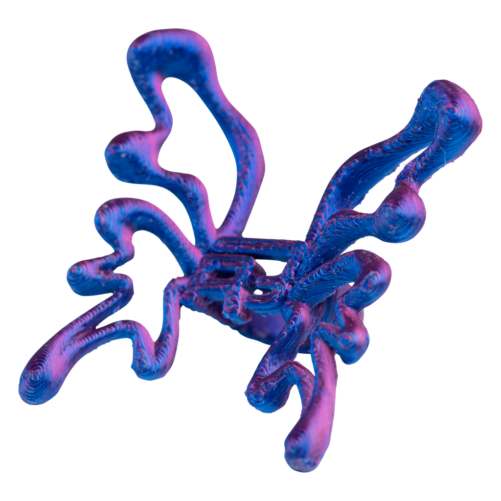 R3 Butterfly Ring - Blue/Red features PLA Shiny recycled silk in a blue and red gradient.