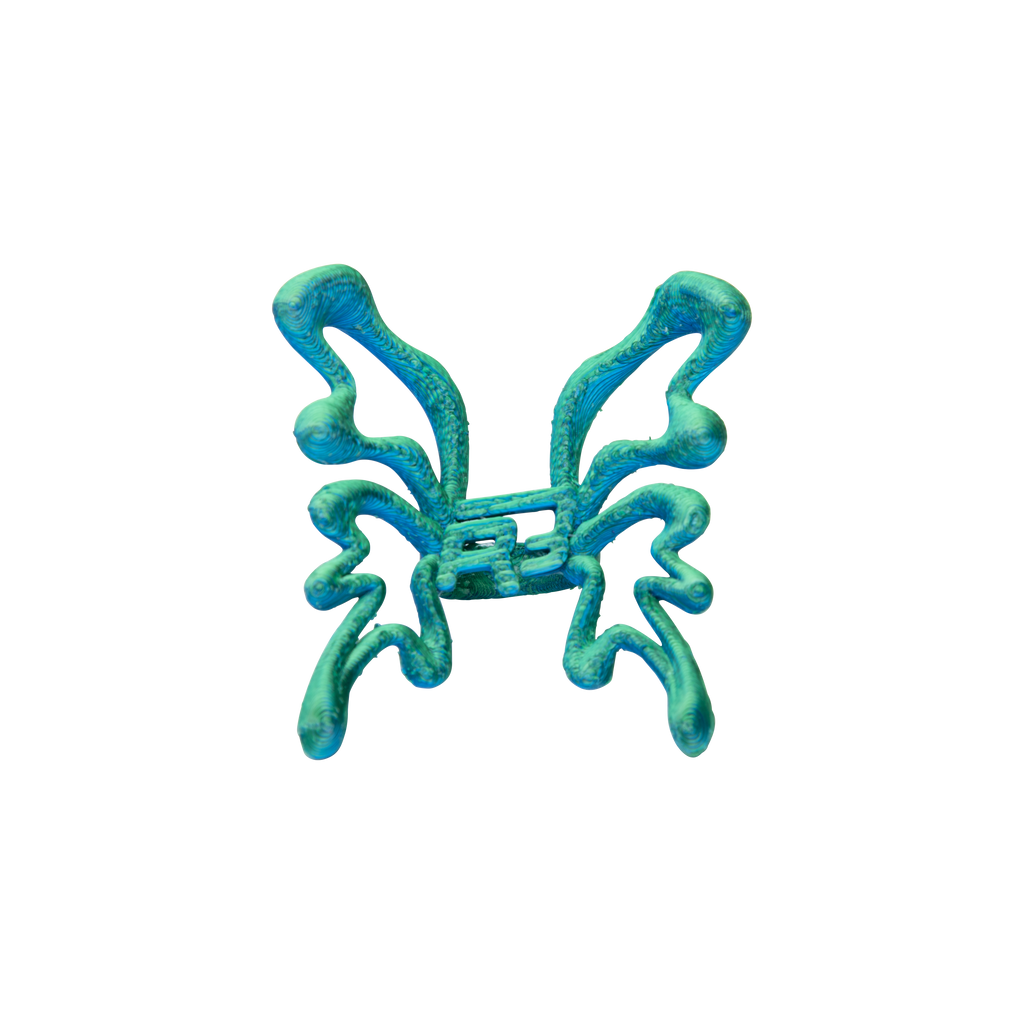 R3 Butterfly Ring - Green/Blue features PLA Shiny recycled silk in a green and blue gradient.