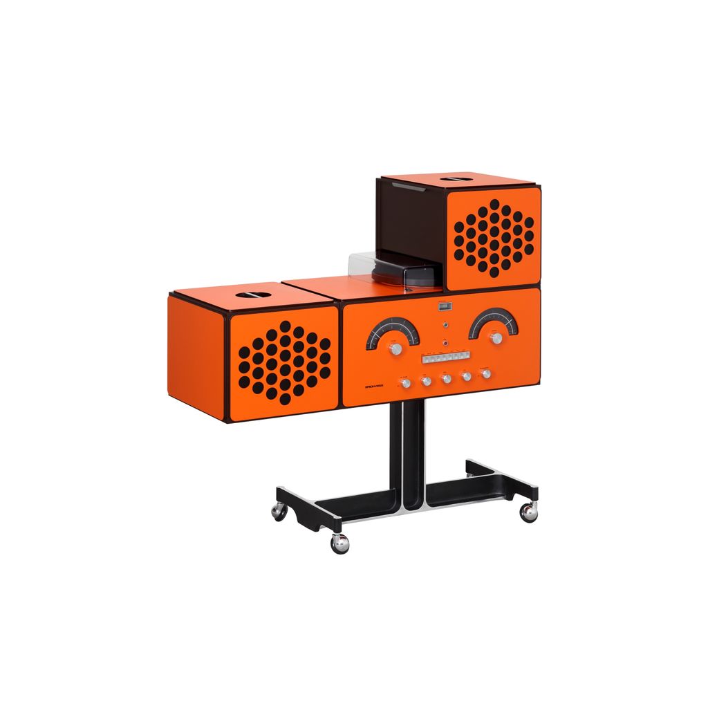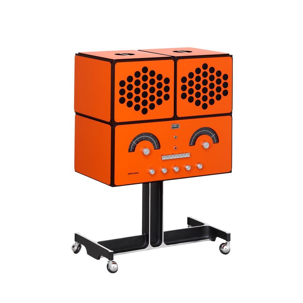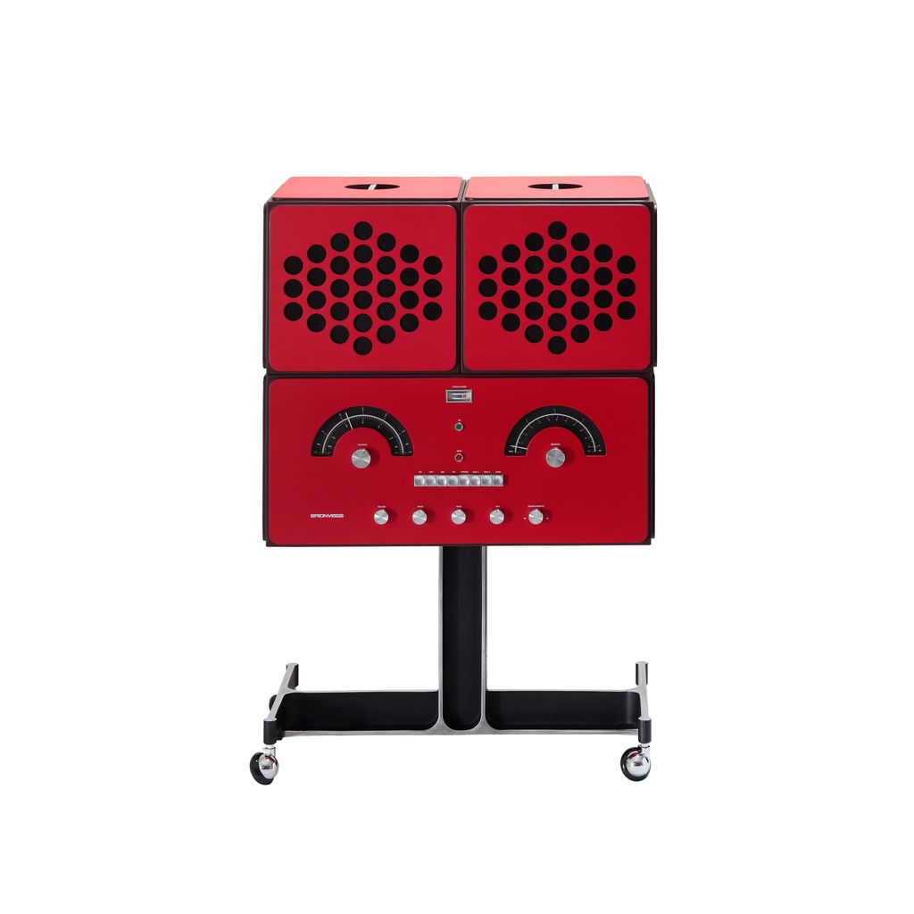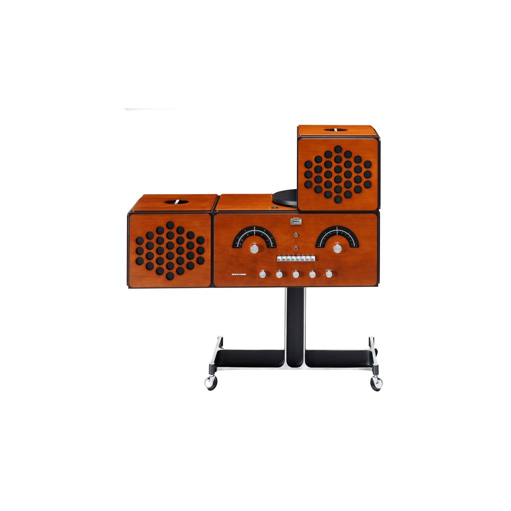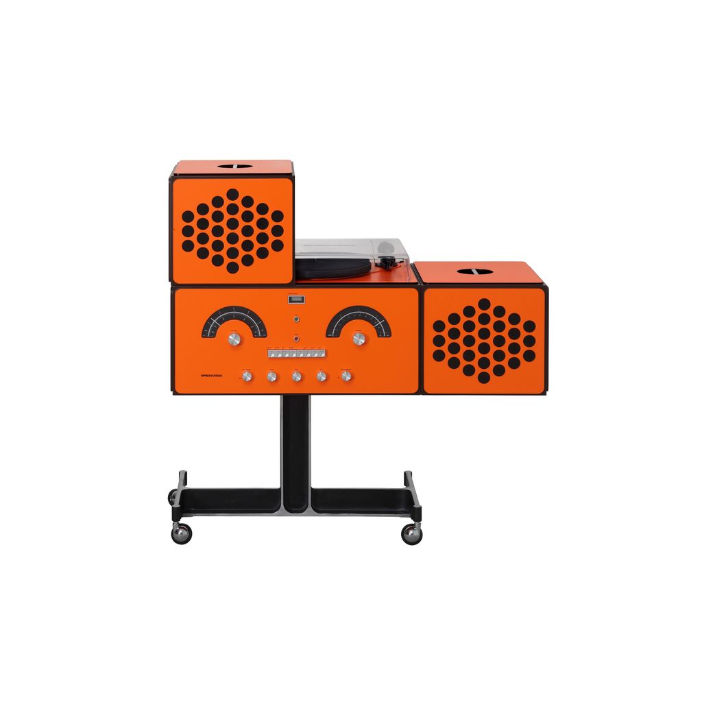 Sixty years of uniqueness, told by a smile that stays in time. Created in 1965 by designers Achille and Pier Giacomo Castiglioni, the radiofonografo is a superb work of modern industrial design, thanks to its incomparable style and sound. Exuding retro charm, along with an incredible sound and the ability to move the sound modules to best suit the surrounding environment, this system creates a listening experience both stimulating and intriguing.