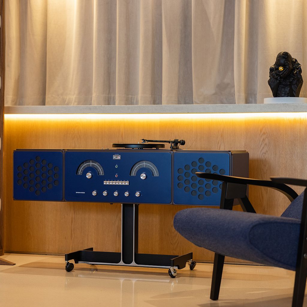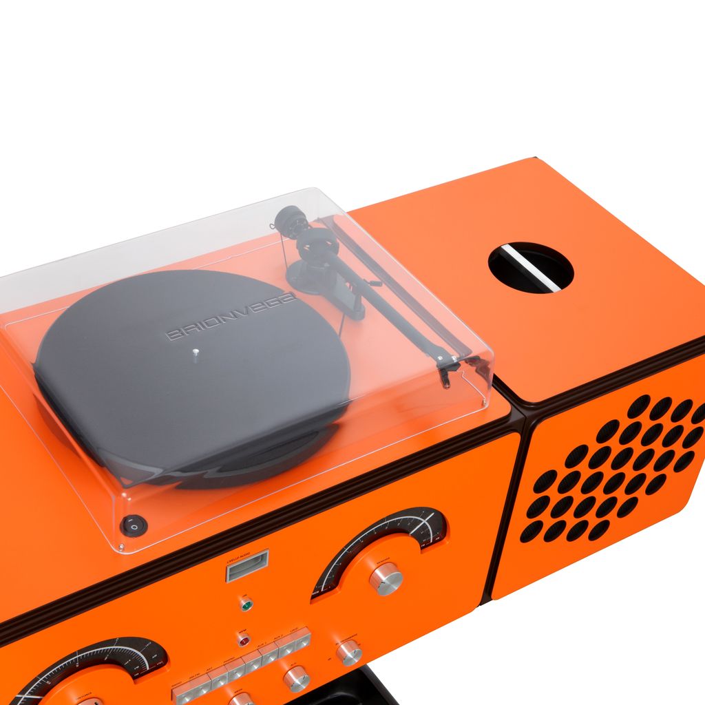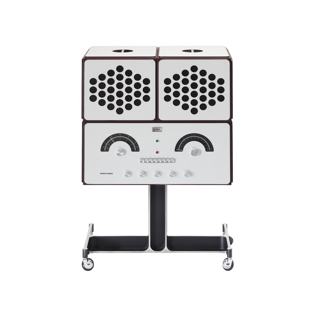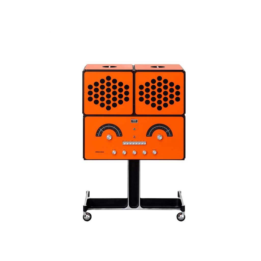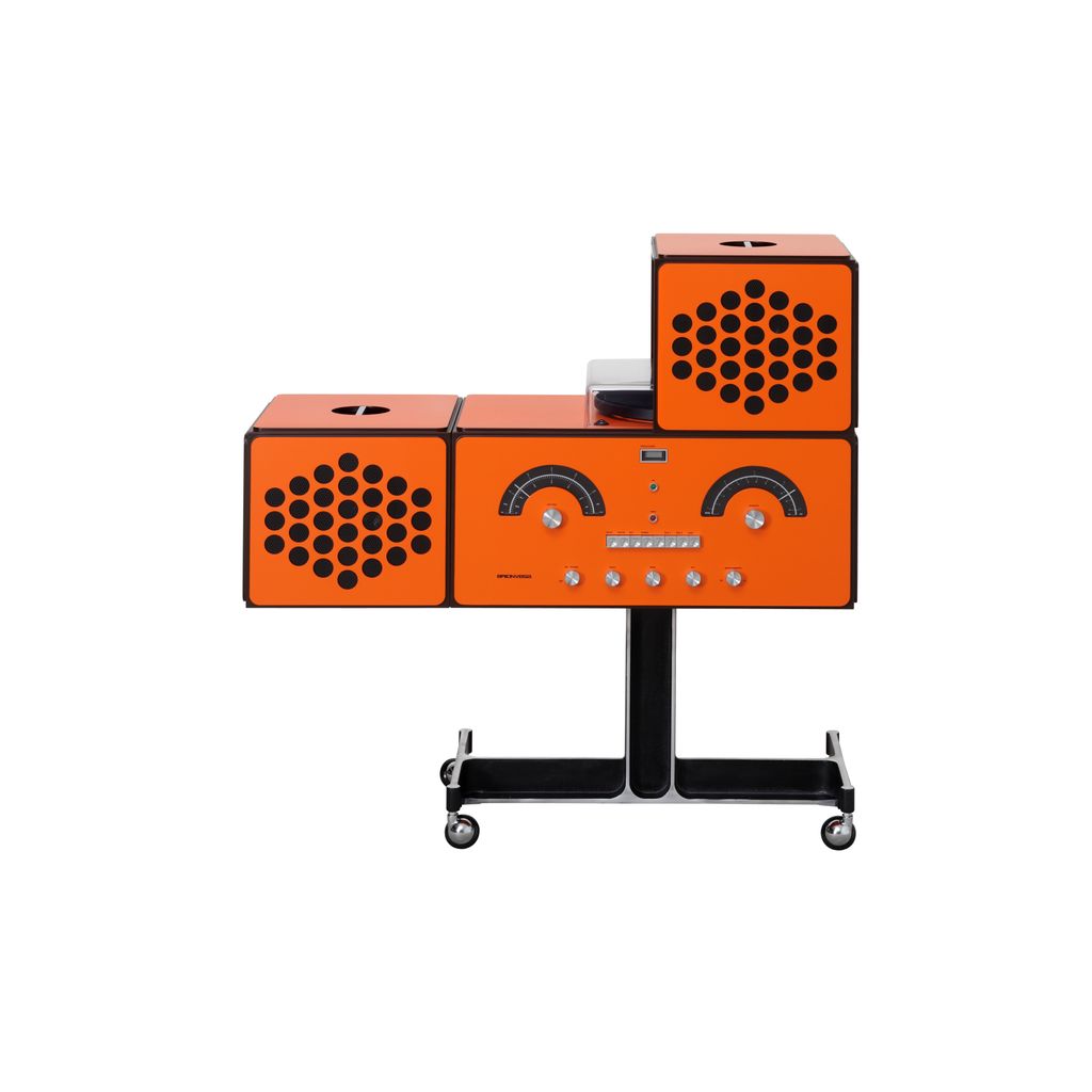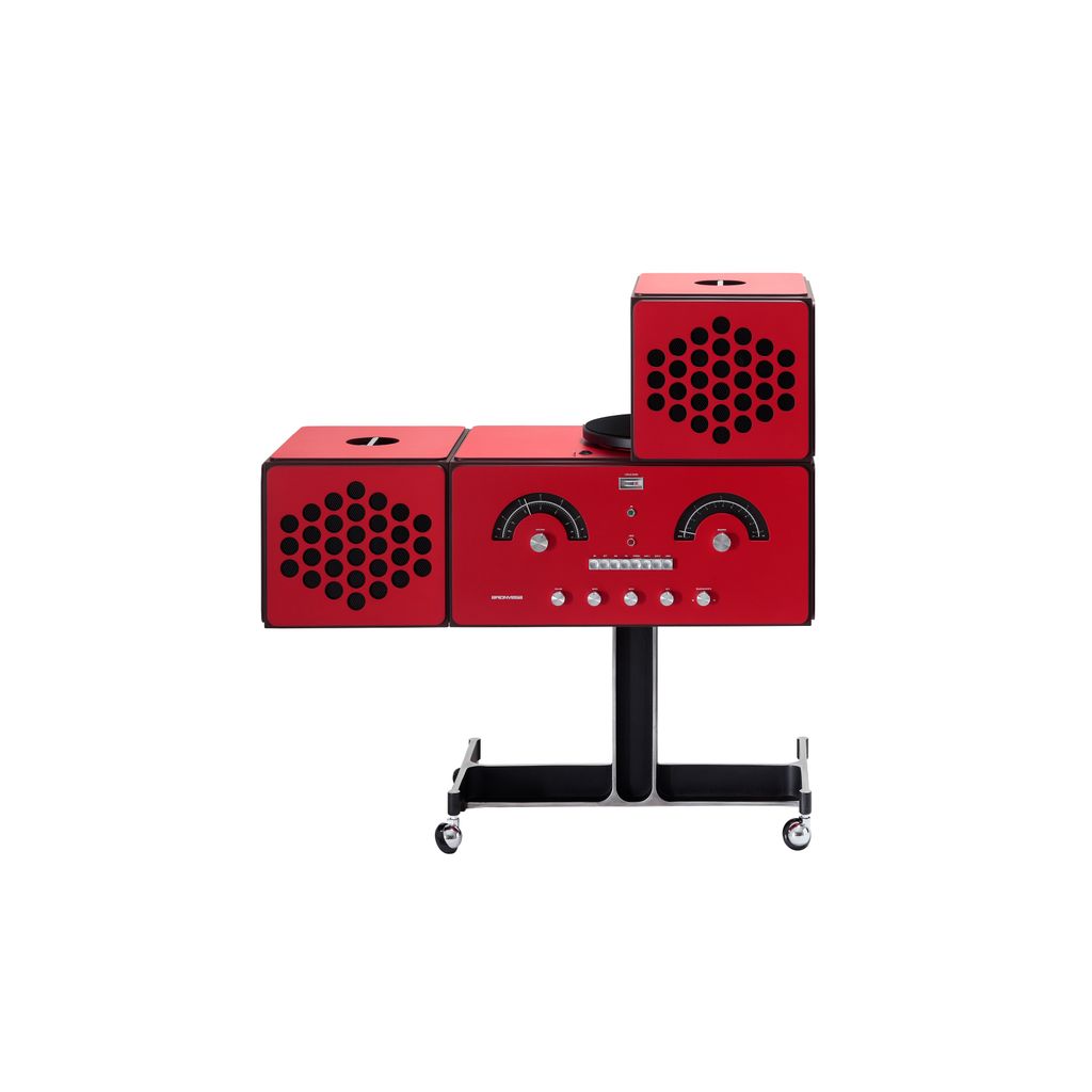 Sixty years of uniqueness, told by a smile that stays in time. Created in 1965 by designers Achille and Pier Giacomo Castiglioni, the radiofonografo is a superb work of modern industrial design, thanks to its incomparable style and sound. Exuding retro charm, along with an incredible sound and the ability to move the sound modules to best suit the surrounding environment, this system creates a listening experience both stimulating and intriguing.