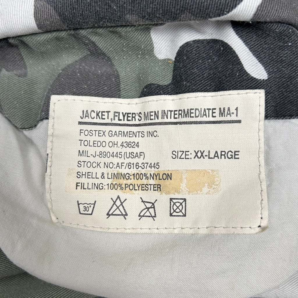 Perhaps the most defining show of Raf Simons' early-new-millennium period, the 2001 Autumn/Winter collection titled "Riot! Riot! Riot!" was nothing but a pure interpretation of the crucial inspiration sources, which drove the designer's earlier works: youth, protest, and teenage rebellion. This iconic MA-1 Camo Bomber Jacket embellished with patches showcasing images of David Bowie, Richey Edwards, a Bauhaus Poster, and an article highlighting the mysterious disappearance of Edwards from the Manic Street Preachers.