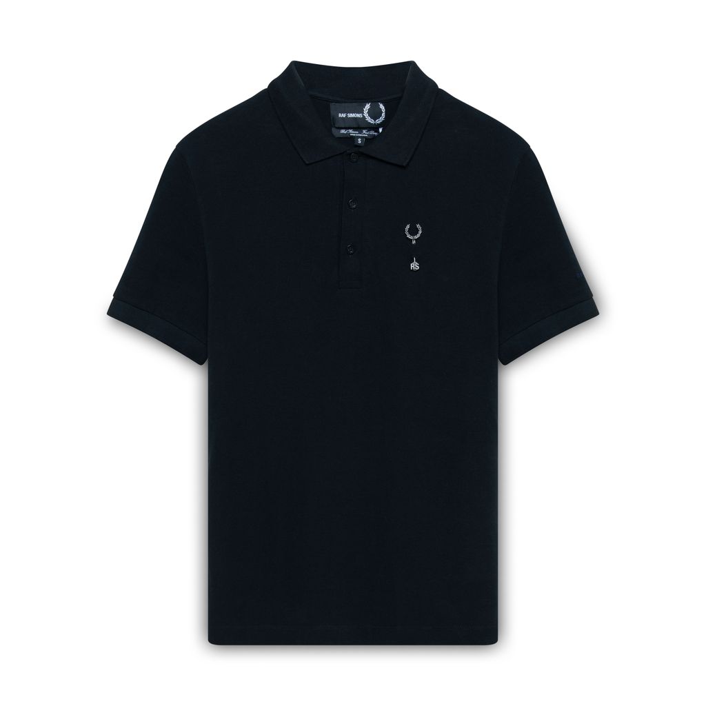 Features pin with Fred Perry and Raf Simons logo.