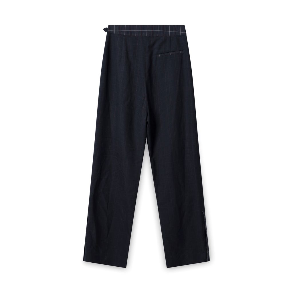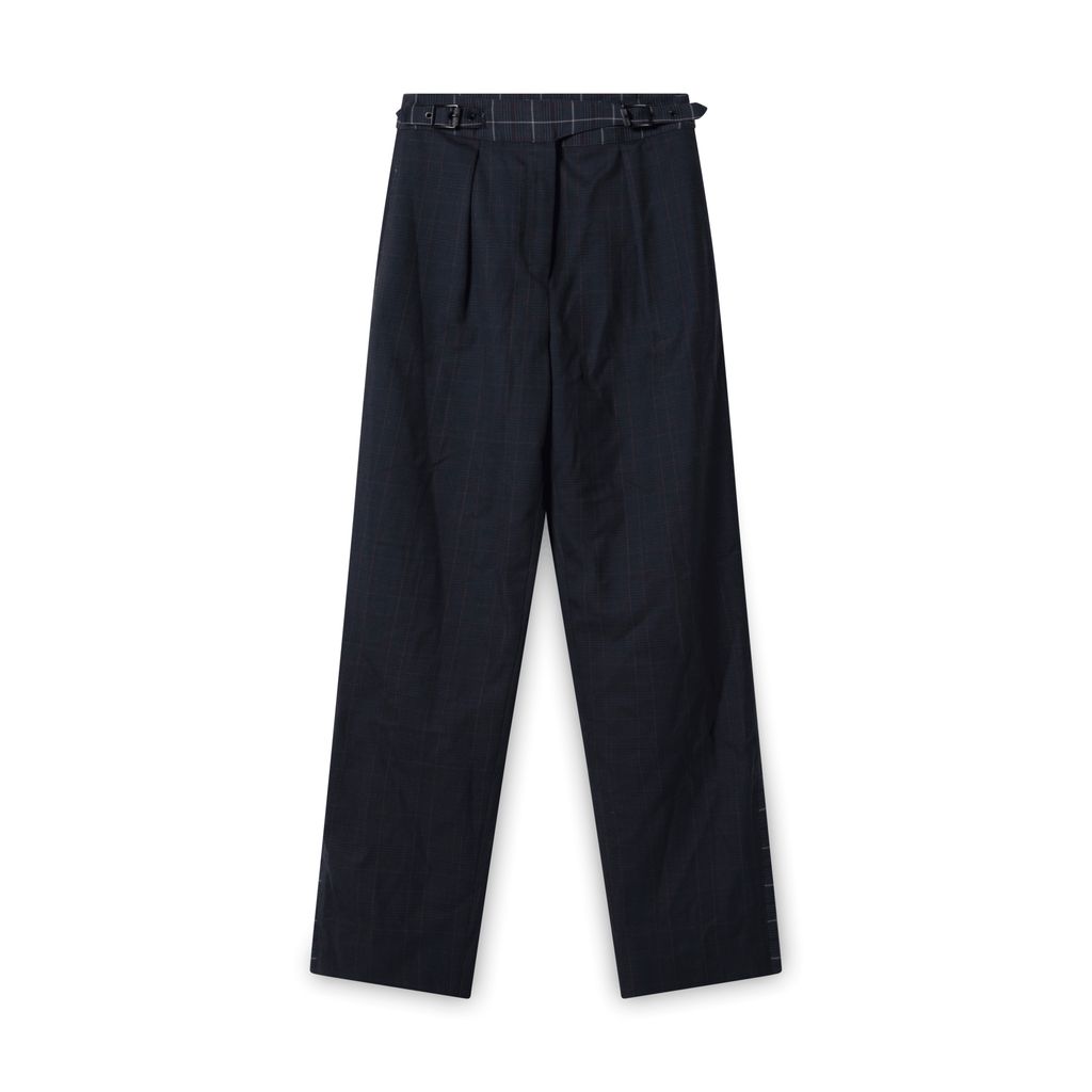 Rag & Bone plaid wool blend pants features menswear-inspired pleats atop these chic wool-blend trousers patterned with a subtle plaid, wrapped tab waistband, zipper with hook-eyed closure, and buckle-tab belt.