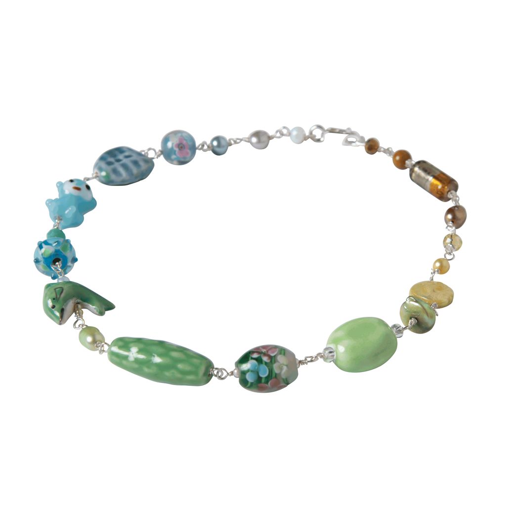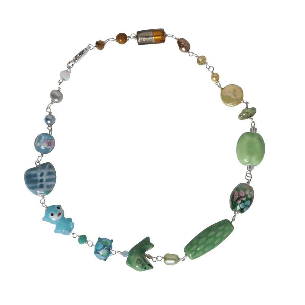 Various clay, hand-painted beads, lampwork glass, and freshwater pearls, 925 Silver Hardware.
