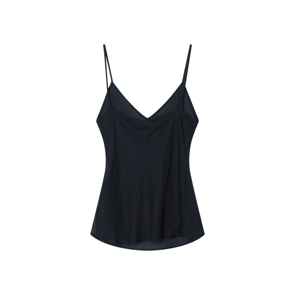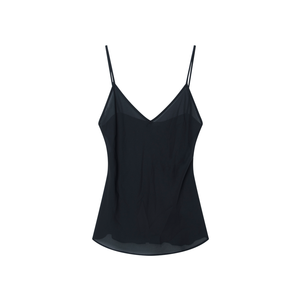 Ralph Lauren Black Camisole features sheer material, spaghetti straps, and V-neck.