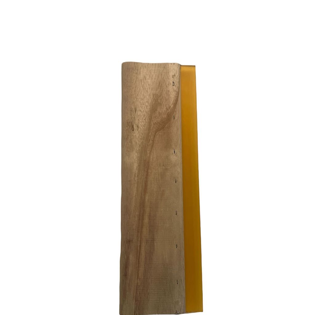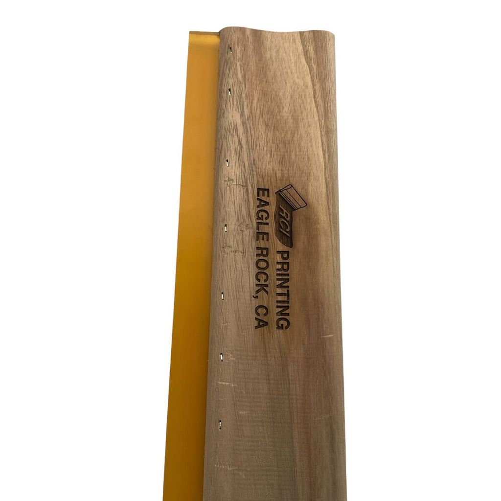 A specifically limited run of 4 solid wood with silicone applicator screen print squeegees embellished with the "RCI Printing" logo mark created ahead of his SS23 show in Paris, titled Seed & Soil. A continued celebration of the simple, time-honored, tools often used in the earliest days of creating a new brand. The squeegee is industry standard and usable for printing or simply as an art object. Each squeegee is uniquely imprinted with Reese Cooper's fingerprints in the ink used to print garments in Paris. 4 available to the public for purchase.