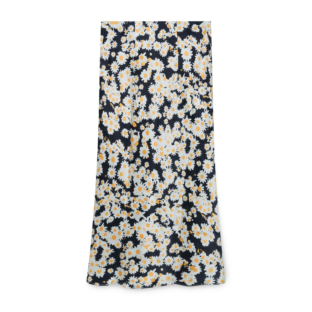 Réalisation Par Silk Floral Midi Skirt features 100% silk, elasticized waist, and midi length.
