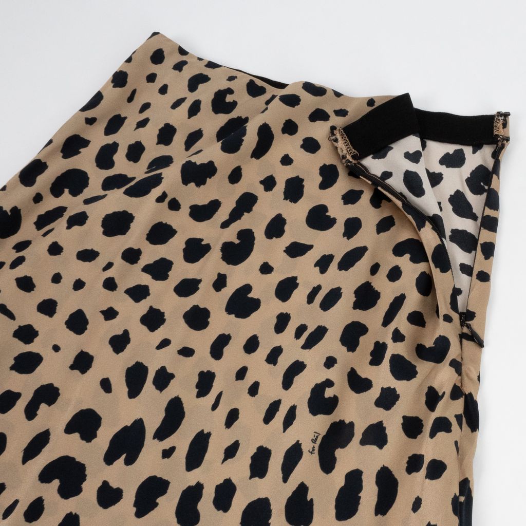 The it girl skirt of the century, this leopard slip skirt from Realisation Par is an obvious must have. Features hidden elastic waistband, invisible side zipper closure with hook and eyes at waist, slightly ruffled hem, and minor signs of wear. Signs of wear include snagging at bottom hem in front.