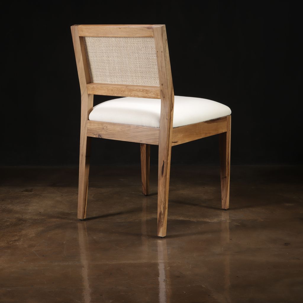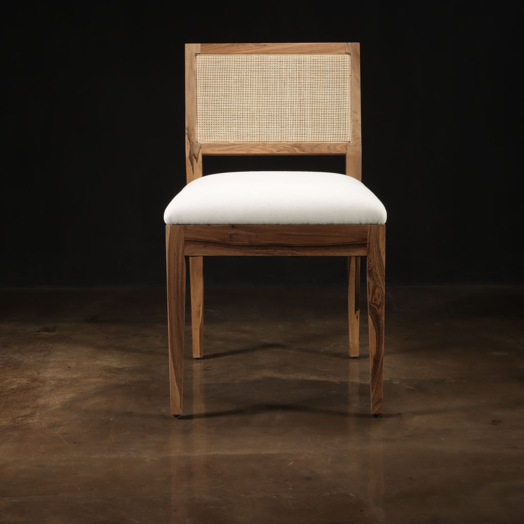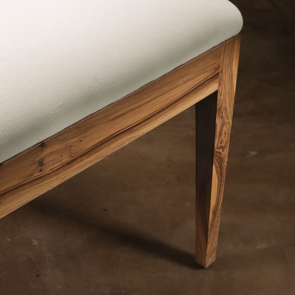 The Recoleta Chair is named for one of the oldest and illustrious neighborhoods of Buenos Aires, it features a light, angular frame with a caning detail on the back, and can also be made as a bench or booth. Shown in Argentine Rosewood, but available in any solid wood and your choice of fabric or leather.