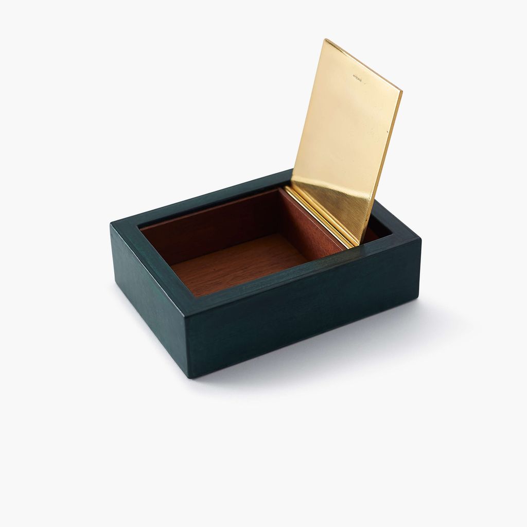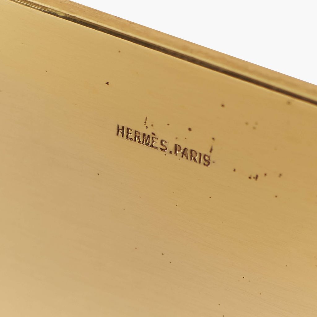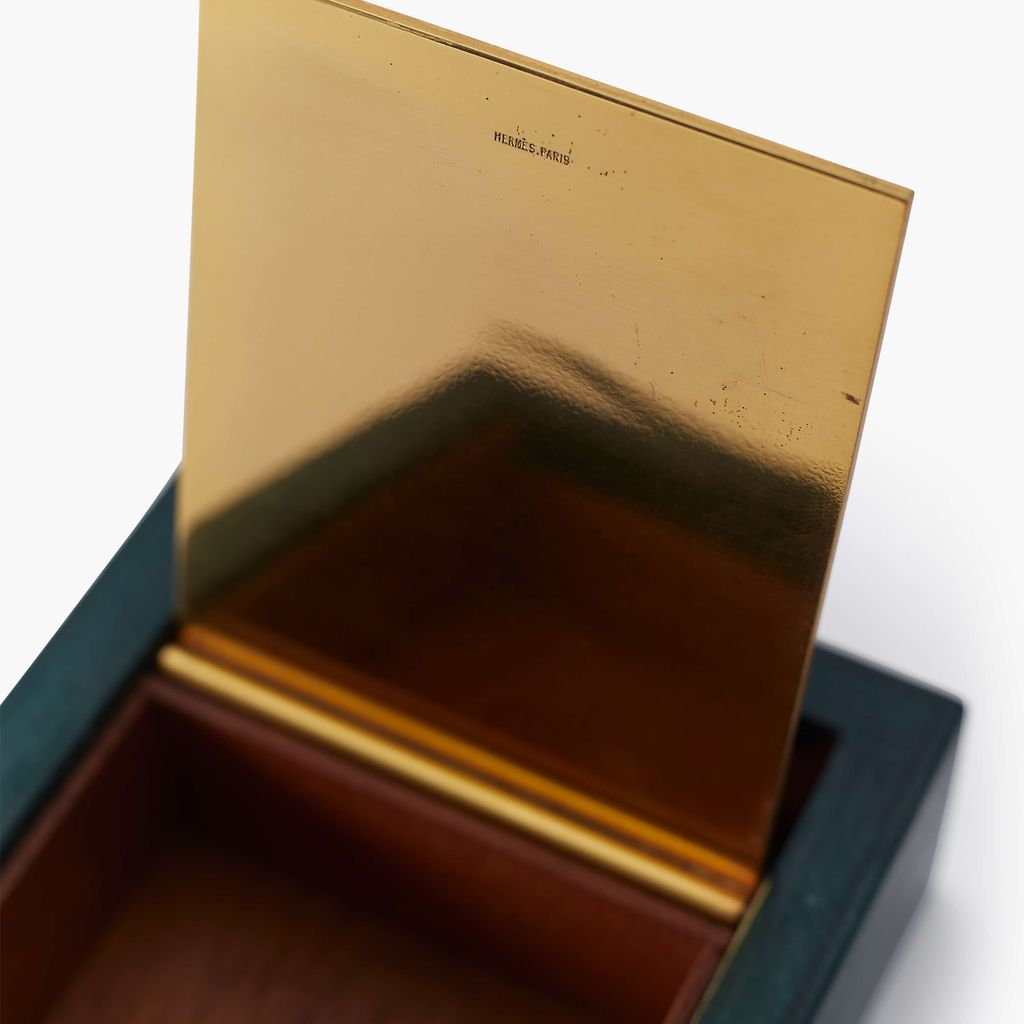 This cigarette box was designed by Paul Dupré-Lafon for Hermès, Paris. The rectangular box features Hermès' ironic orange color, with green leather and a hinged flip-top lid, impressed "Hermès.Paris." Lafon's elegant designs have always attracted the patronage of those with sophisticated taste.