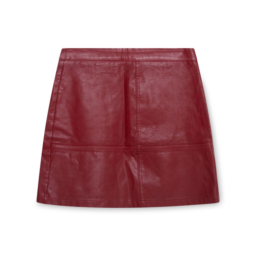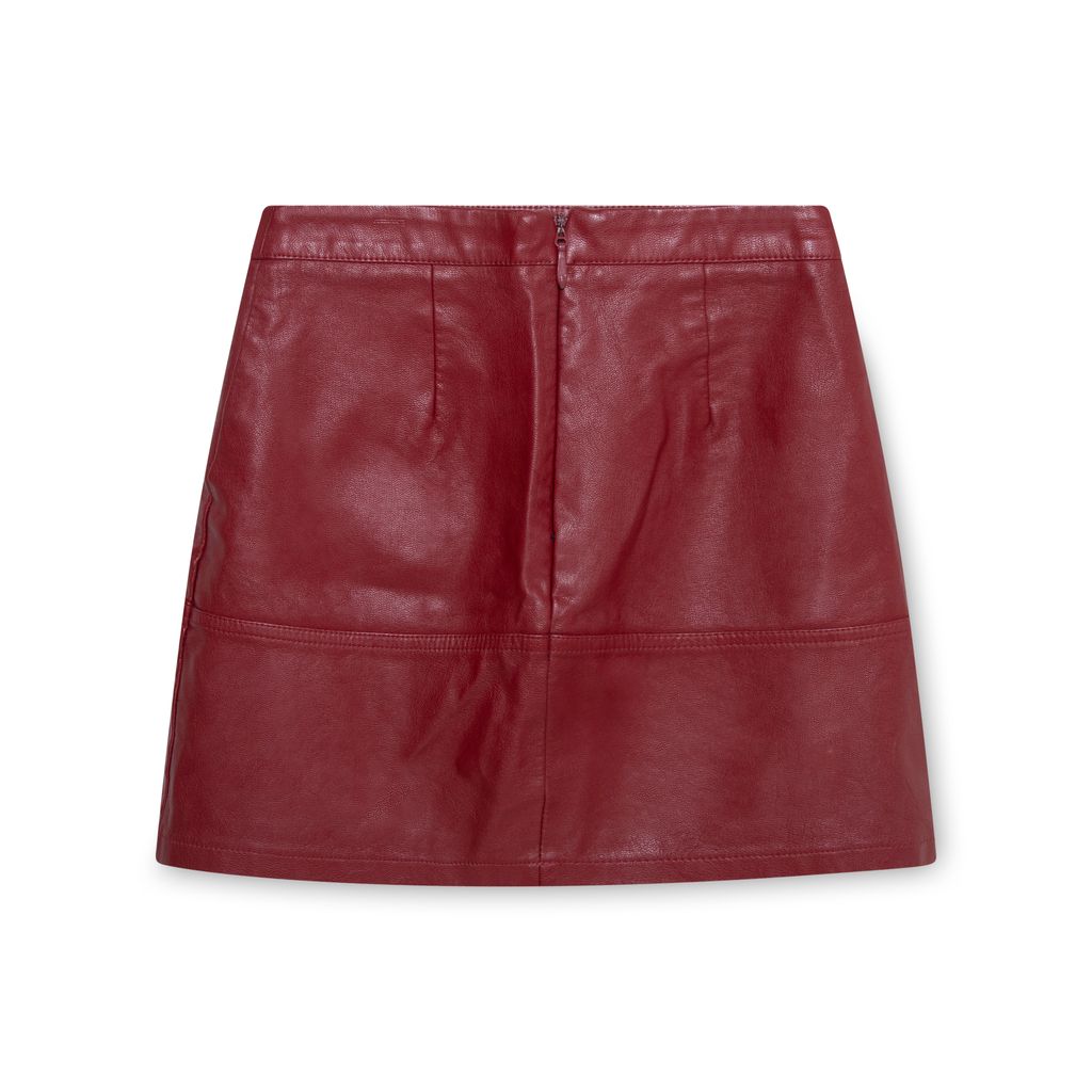Red Leather Miniskirt features zipper in back and high waist.