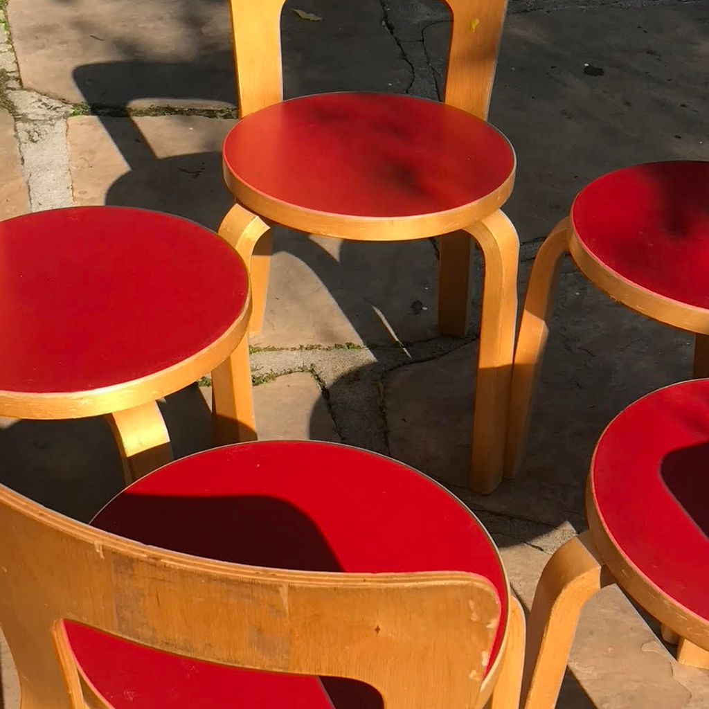 They have beautiful patina with rare red linoleum seats. They are directly sourced from Finland and all have special stamps with show they were originally used for.