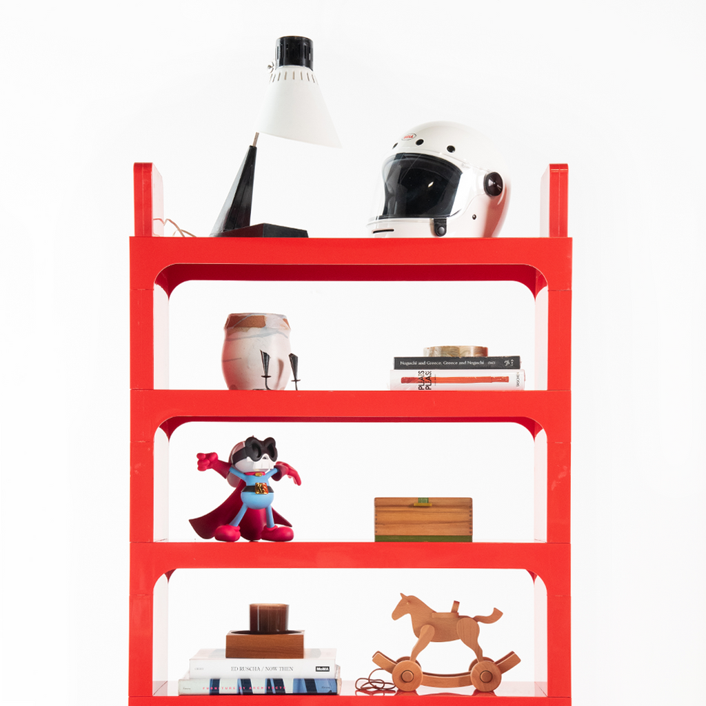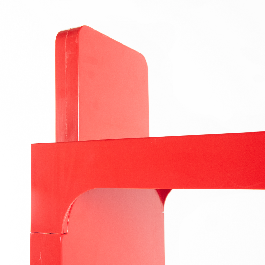 Red Modular Shelf by Olaf Von Bohr for Kartell, 1970s is a modular shelving system designed to be rearranged and customizable. Made in Italy from ABS plastic, this shelf was only in production from 1969-1975.