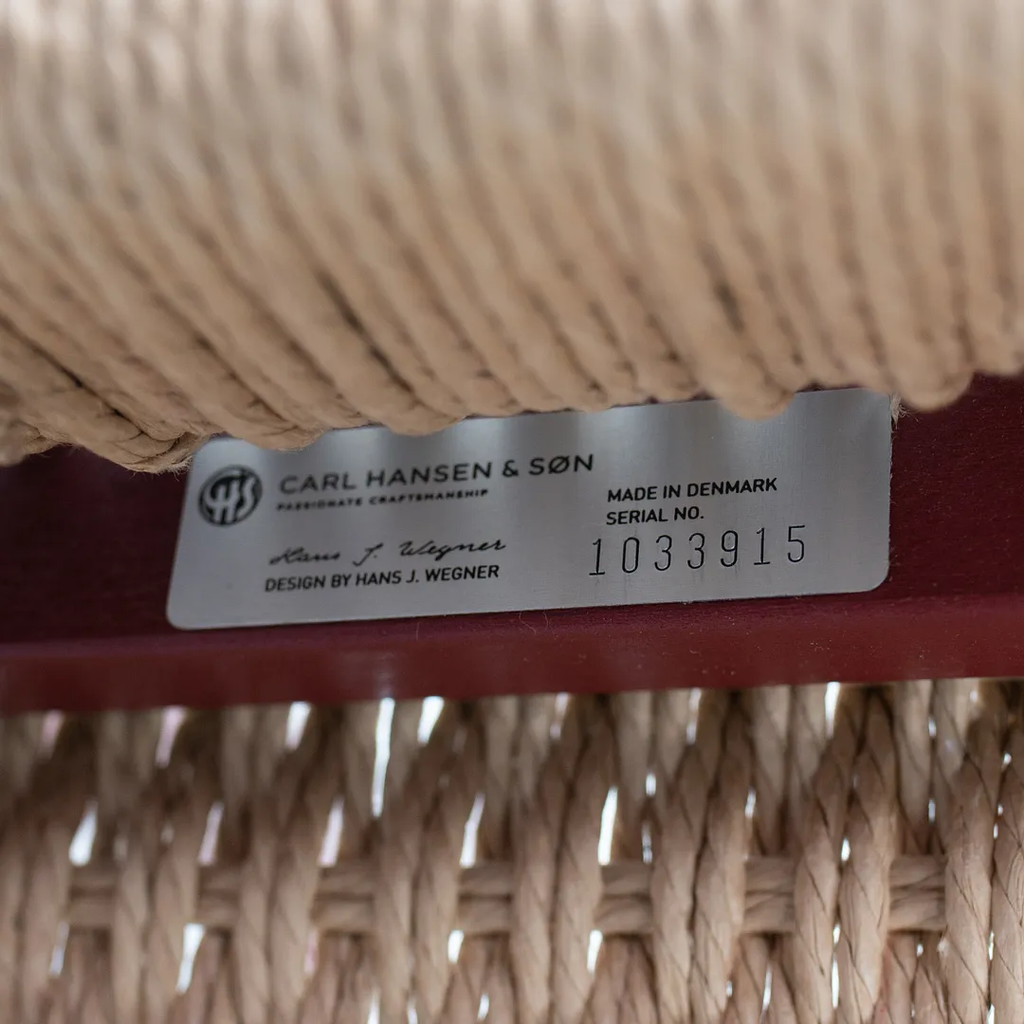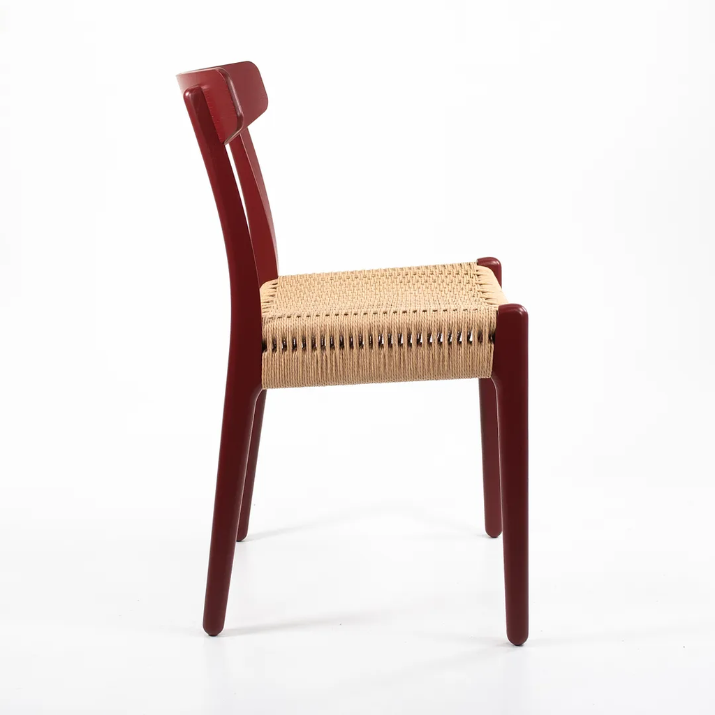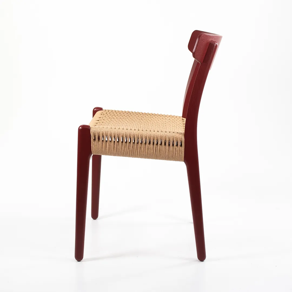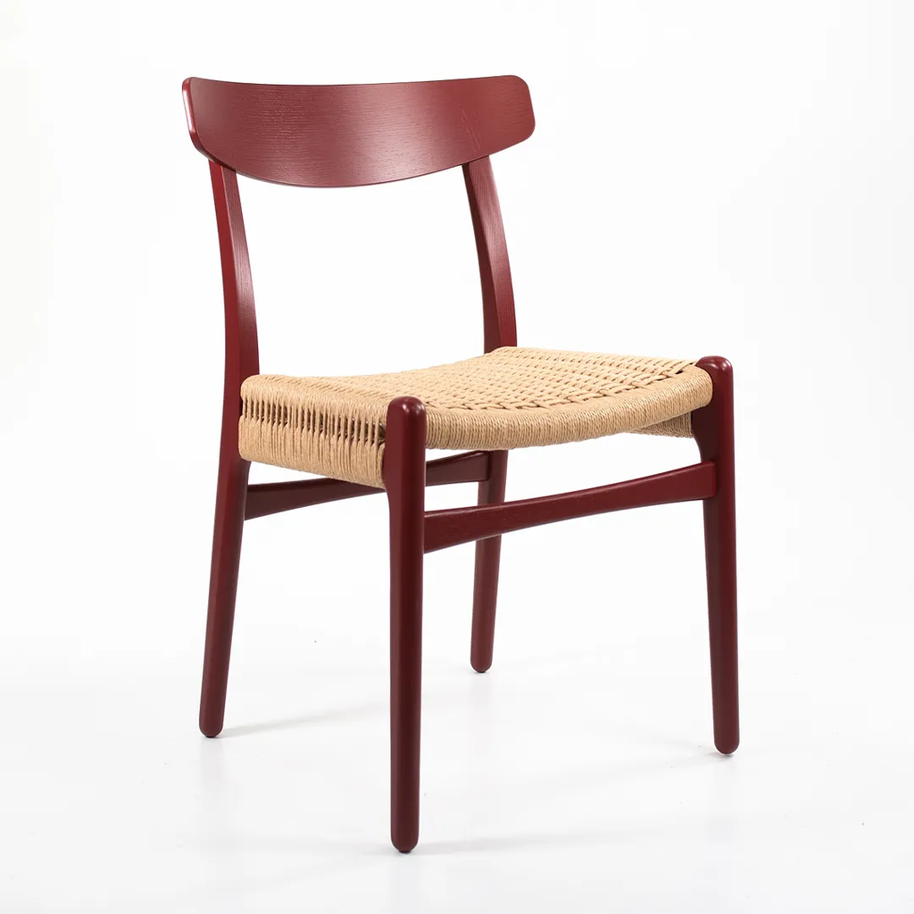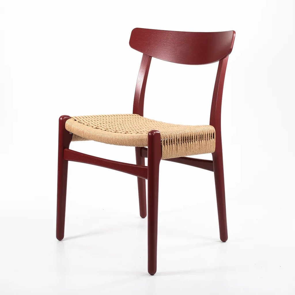 Listed for sale is a CH23 Dining Chair designed by Hans Wegner and produced by Carl Hansen & Son in Denmark. The chair is made with a solid oak frame, painted red (we believe. it to be Falu red, though do not guarantee it), with a natural paper cord seat. The chair dates to circa 2021 and is guaranteed as authentic. Condition is excellent with only minimal wear. See photos. This came directly to us from Carl Hansen and was likely never used in a home or office setting.