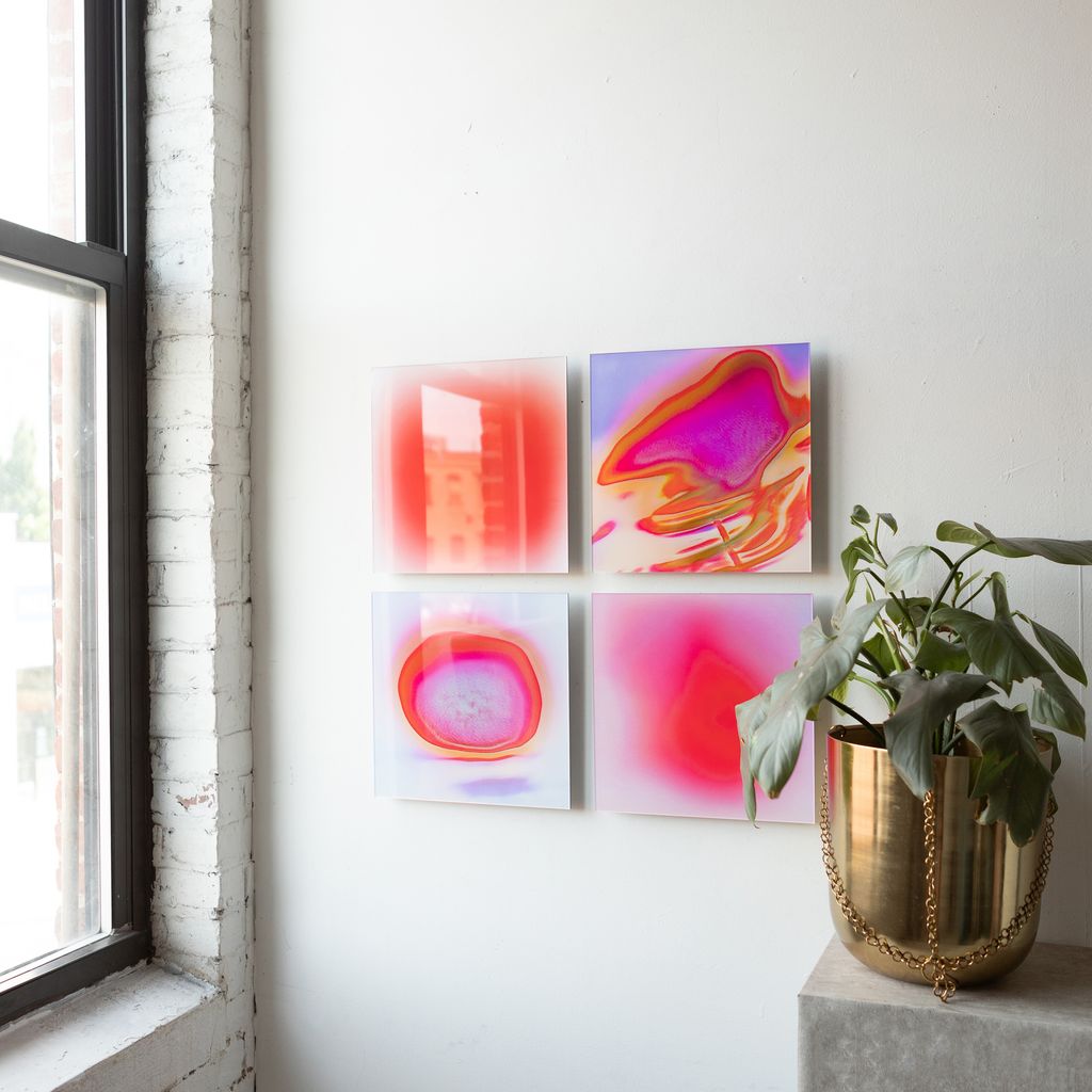 12x12" gallery quality acrylic paint, edition of 10. Aluminum mounting hardware included. Each print is made-to-order and will ship 1-2 weeks of order date. These modular sets can be mixed, matched and rearranged to suit your space.326