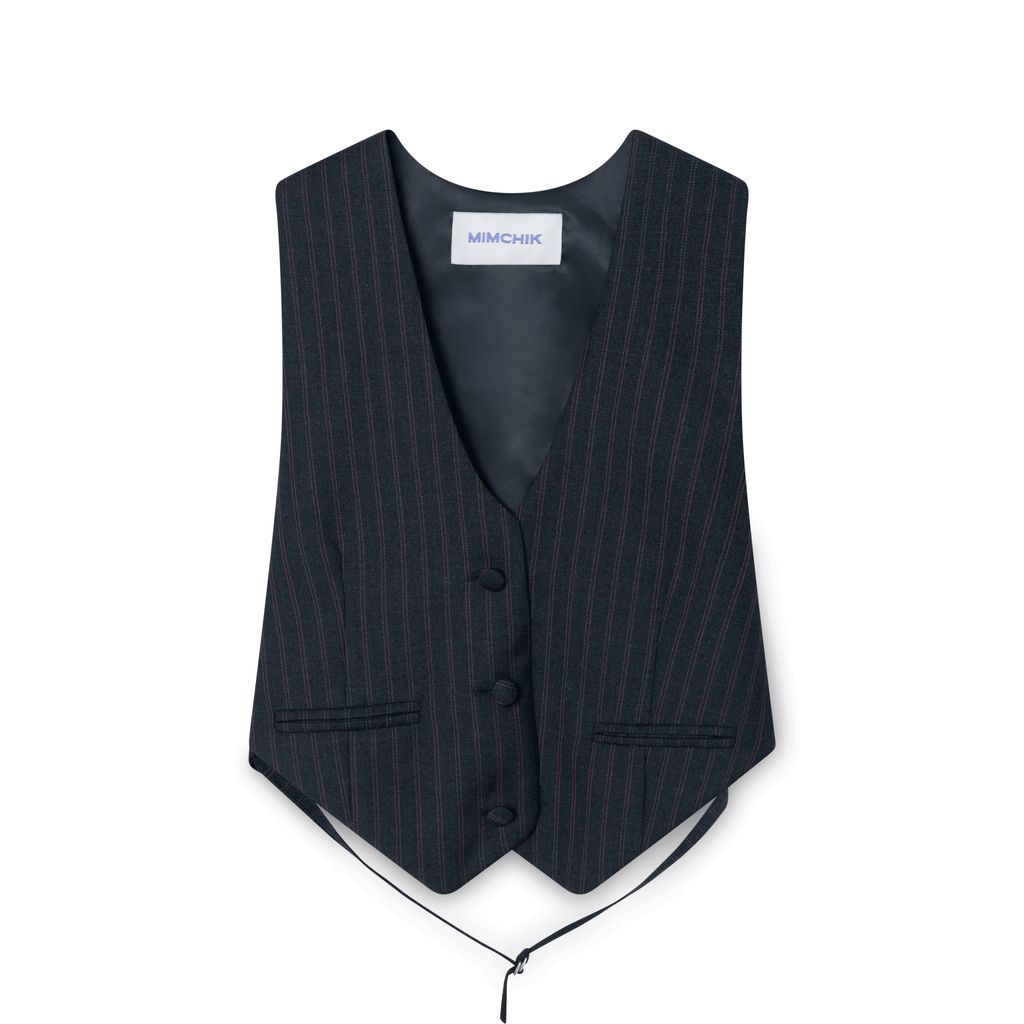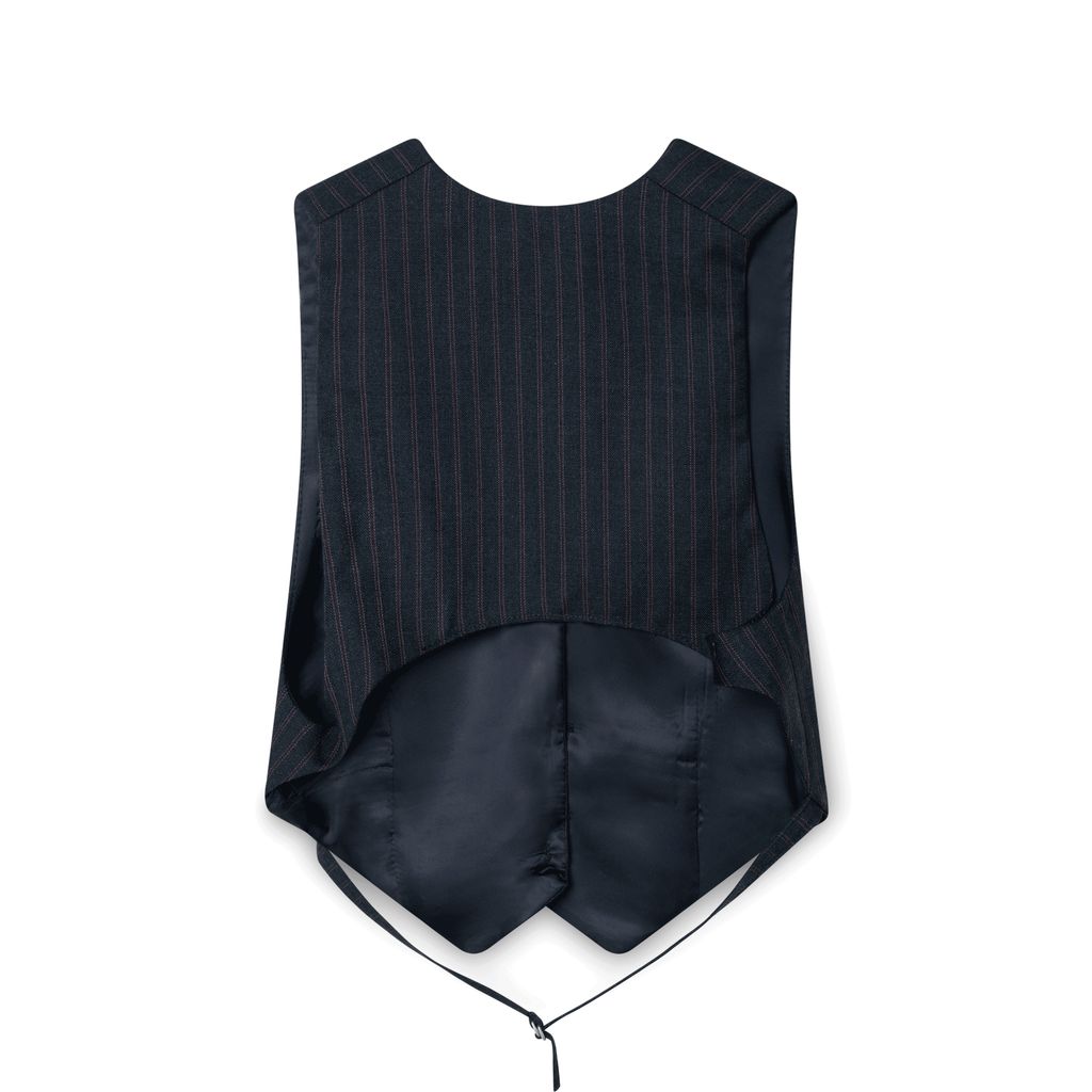 Mixing business with pleasure – the backless vest is made out of deadstock Italian wool and features covered buttons down the center. It's a backless design with an adjustable back strap for a little added security.