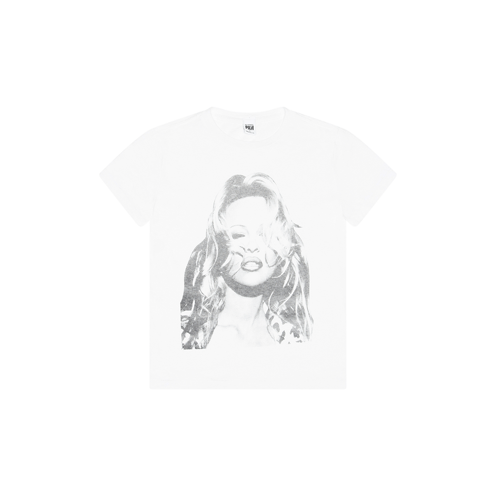 RE/DONE Classic "Pam" Tee features Pamela graphic on front, regenerative cotton, and single-stitch hems.