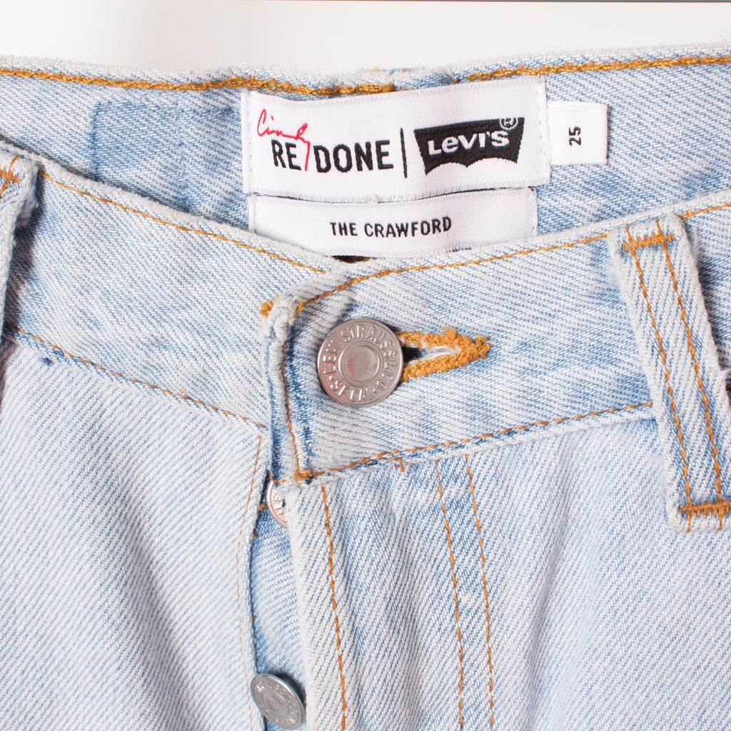 Like new RE/DONE Levi's in a light wash and the classic "Crawford" style fit.
